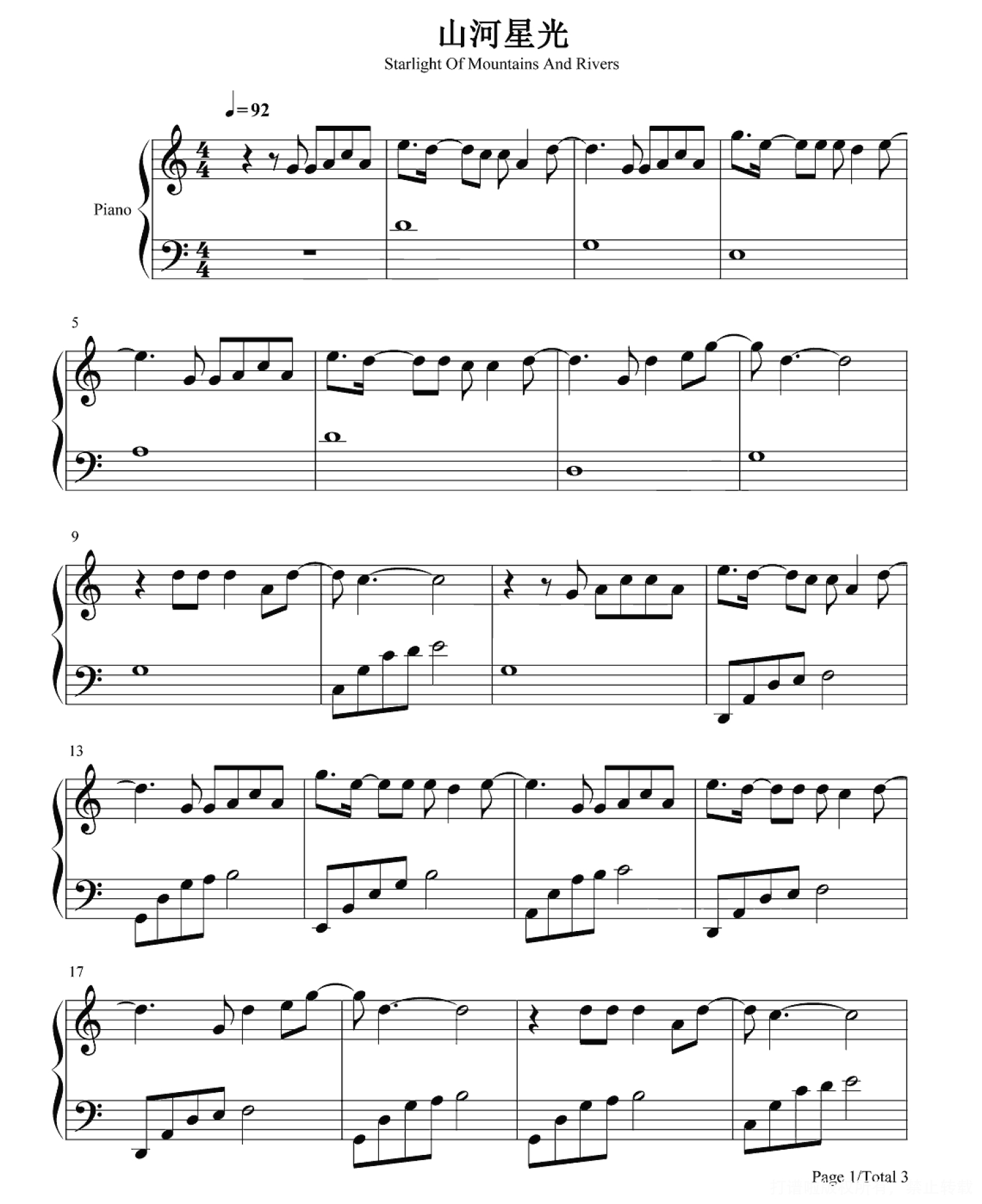 当前位置:琴谱网>钢琴谱>山河星光
