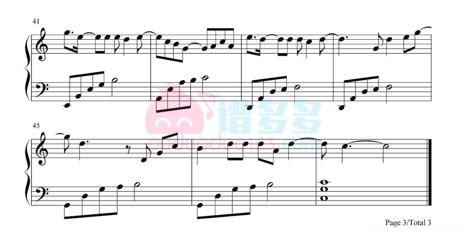 凡是琴谱网站内的版权保护水印,打印时,都会无水印。