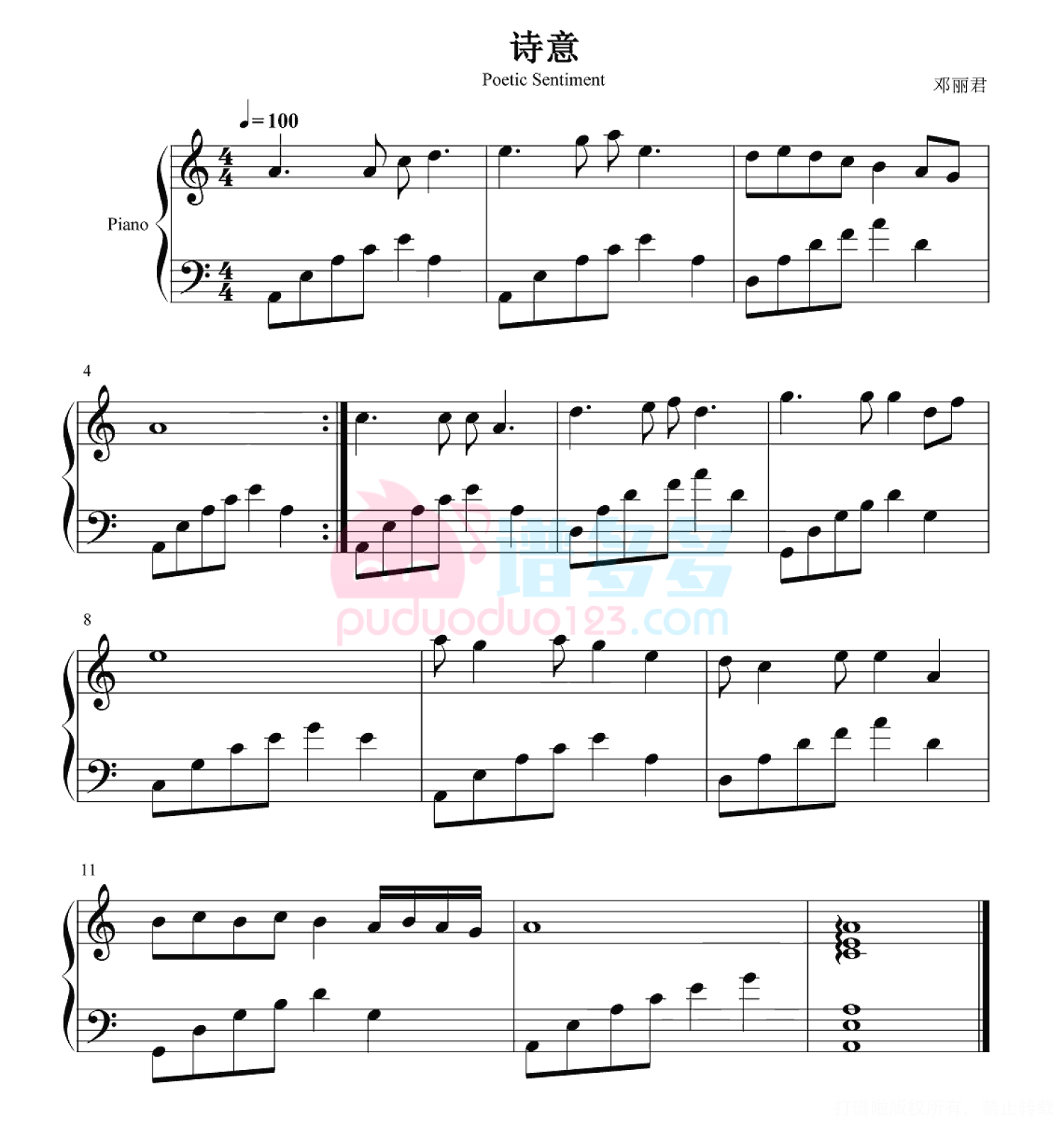诗意钢琴谱 - 邓丽君