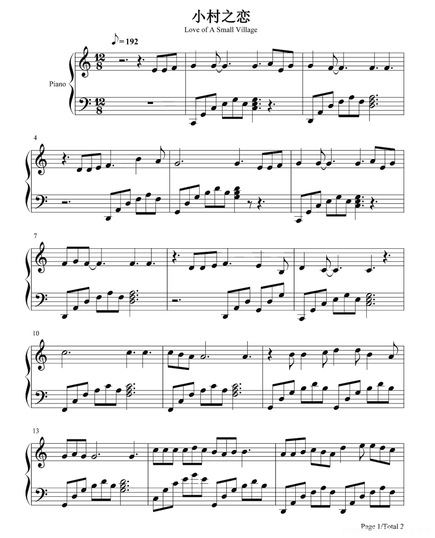 当前位置:琴谱网>钢琴谱>小村之恋