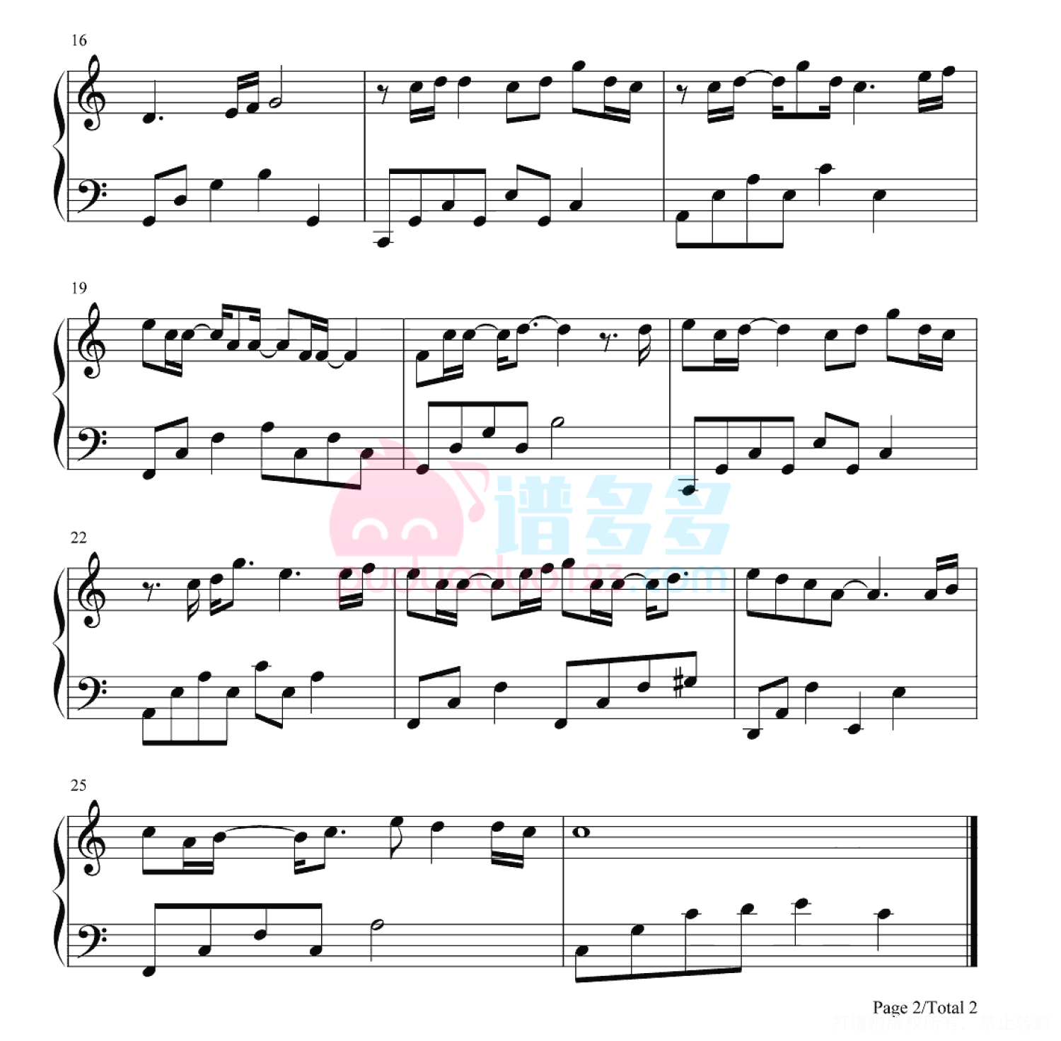 凡是琴谱网站内的版权保护水印,打印时,都会无水印。