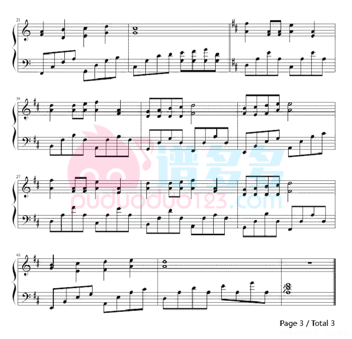 凡是琴谱网站内的版权保护水印,打印时,都会无水印。