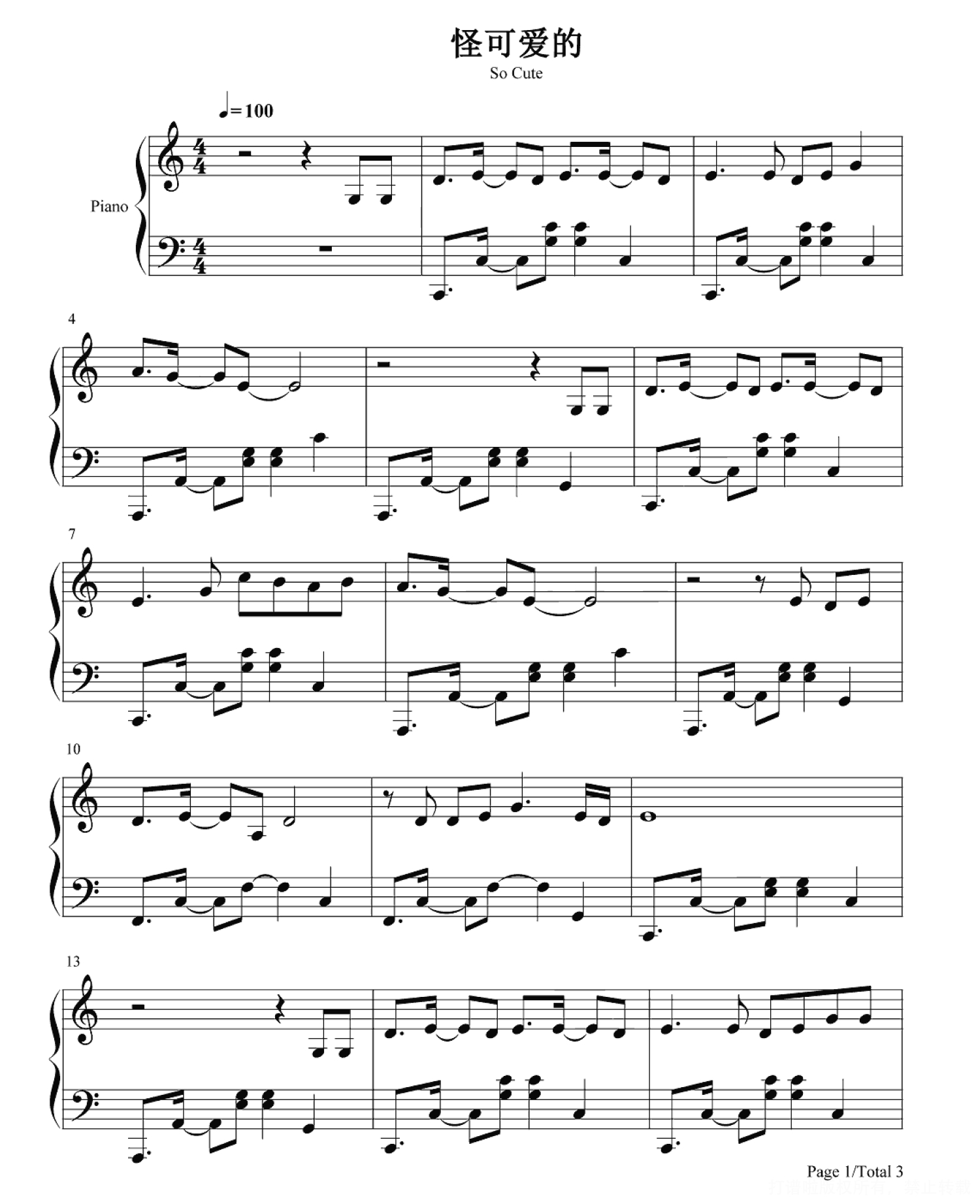 当前位置:琴谱网>钢琴谱>怪可爱的