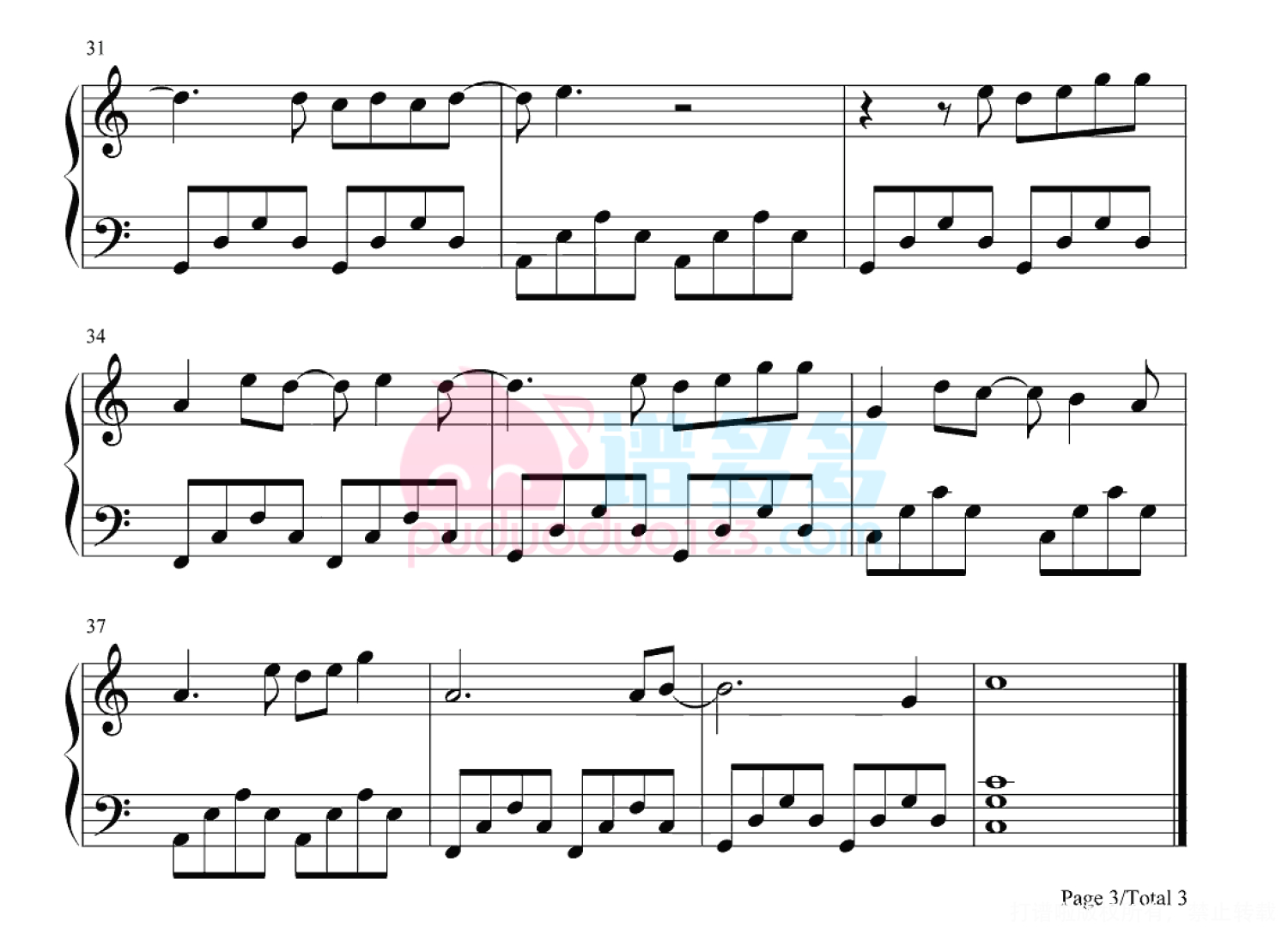 凡是琴谱网站内的版权保护水印,打印时,都会无水印。