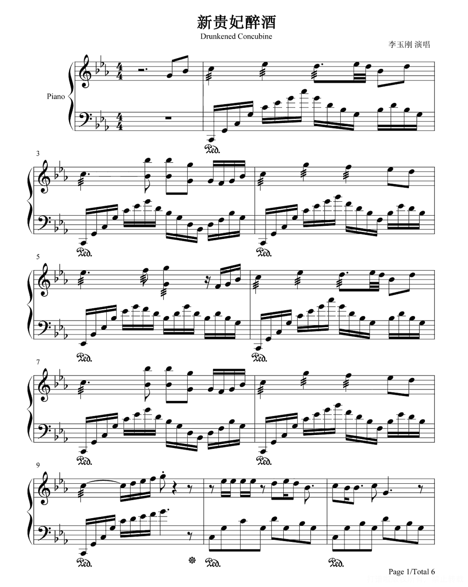 新贵妃醉酒钢琴谱 - 李玉刚