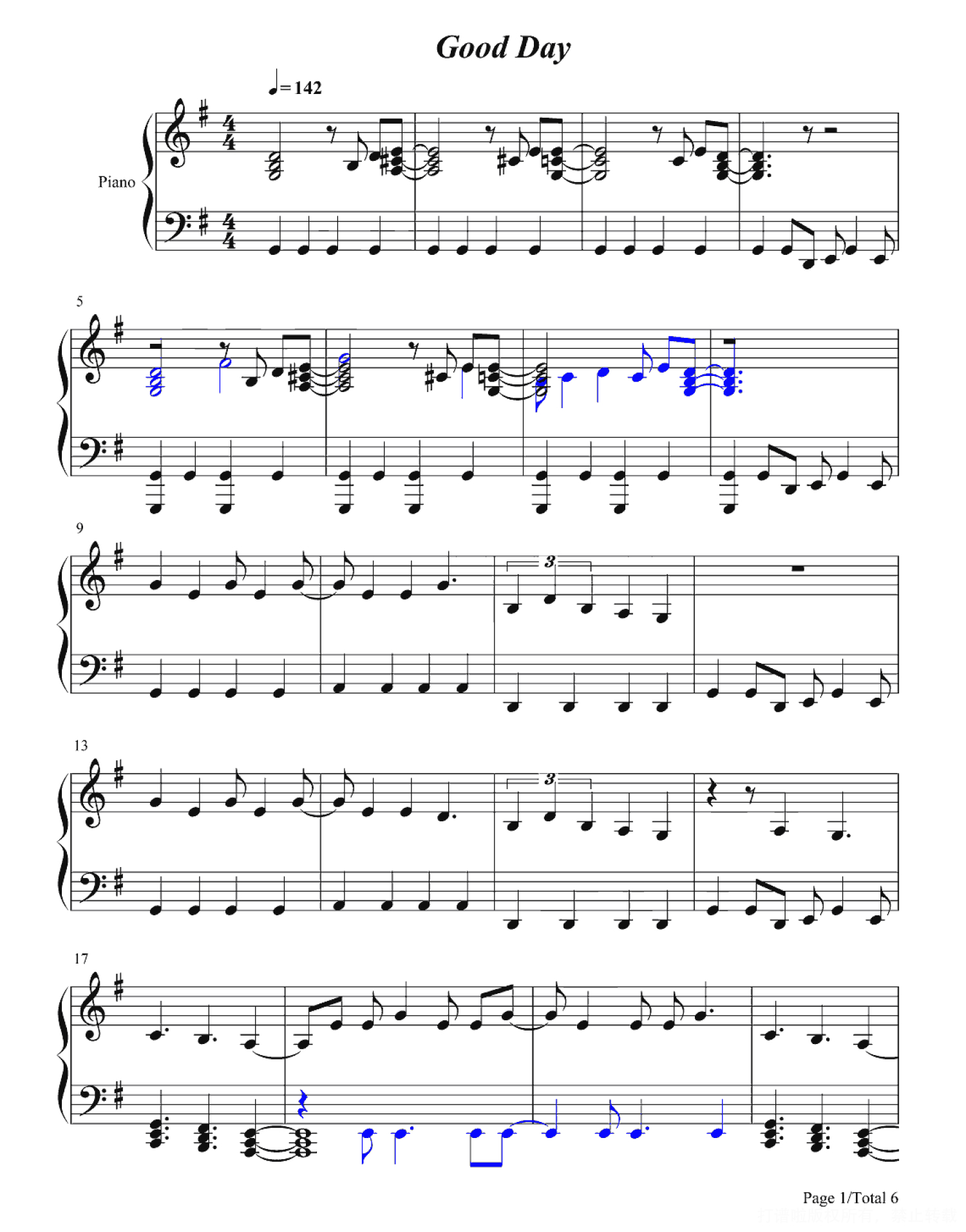 曲谱介绍: Twenty One Pilots《Good Day》钢琴谱,由谱友精心编配制谱,完整版共6张PNG格式图片五线谱。除了《Good Day》高清版钢琴谱,打谱啦还收录了Twenty One Pilots更多热门歌曲不同类型或格式的曲谱,欢迎您浏览及分享。Twenty One Pilots的音乐风格涵盖另类嘻哈、电子流行、独立流行和摇滚。由于曲风多样,难以将其归为某一特定音乐风格并加以描述。