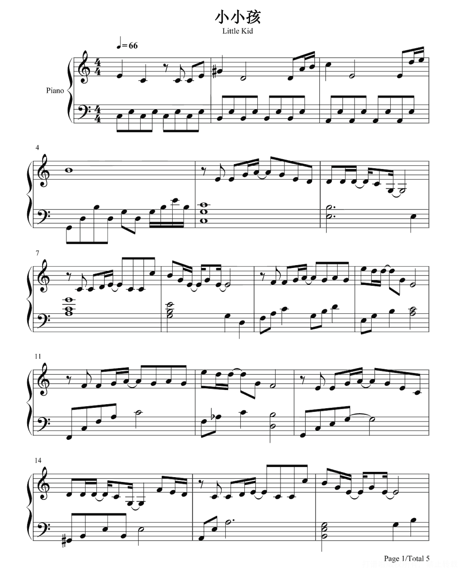 当前位置:琴谱网>钢琴谱>小小孩