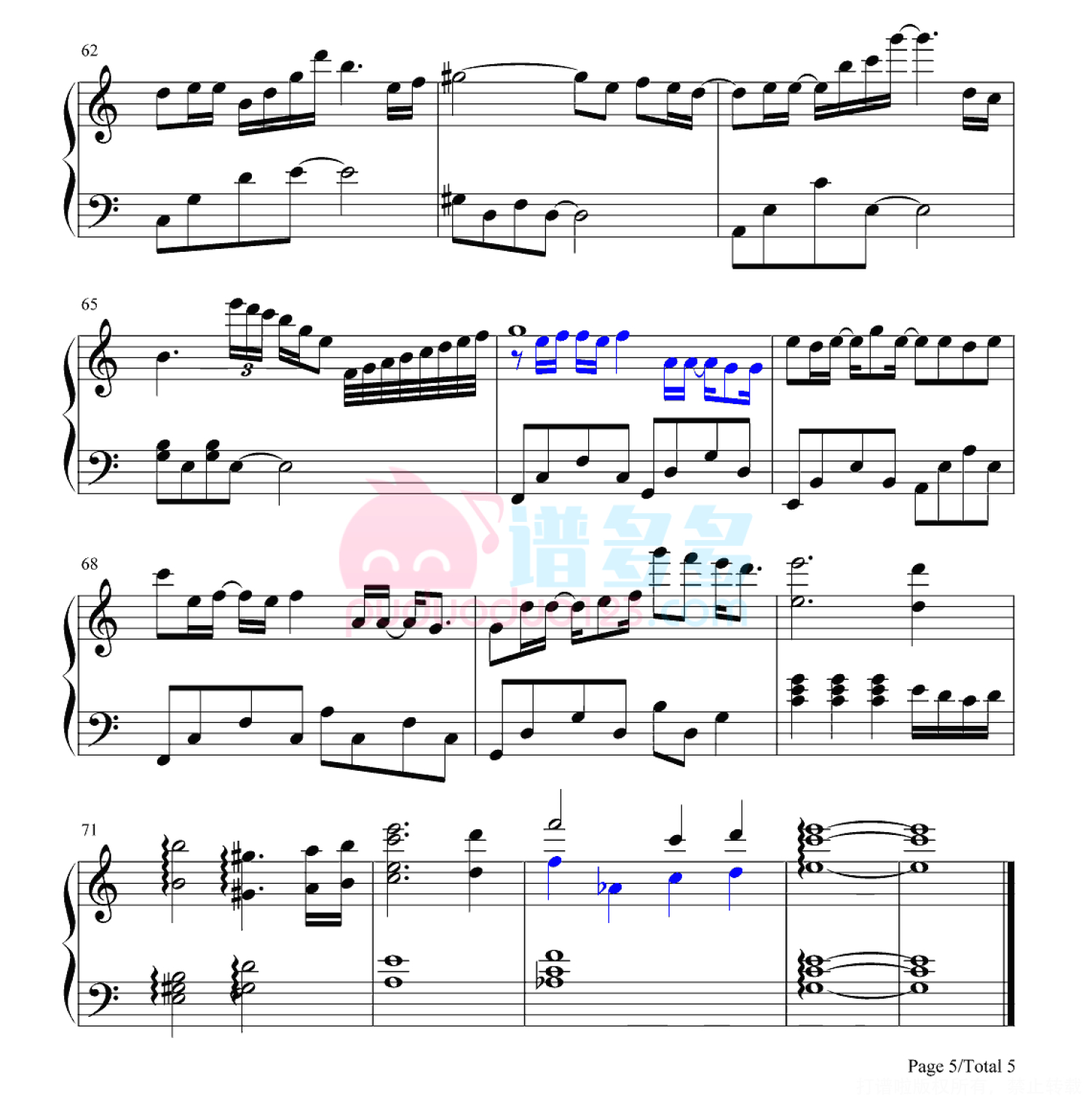 凡是琴谱网站内的版权保护水印,打印时,都会无水印。