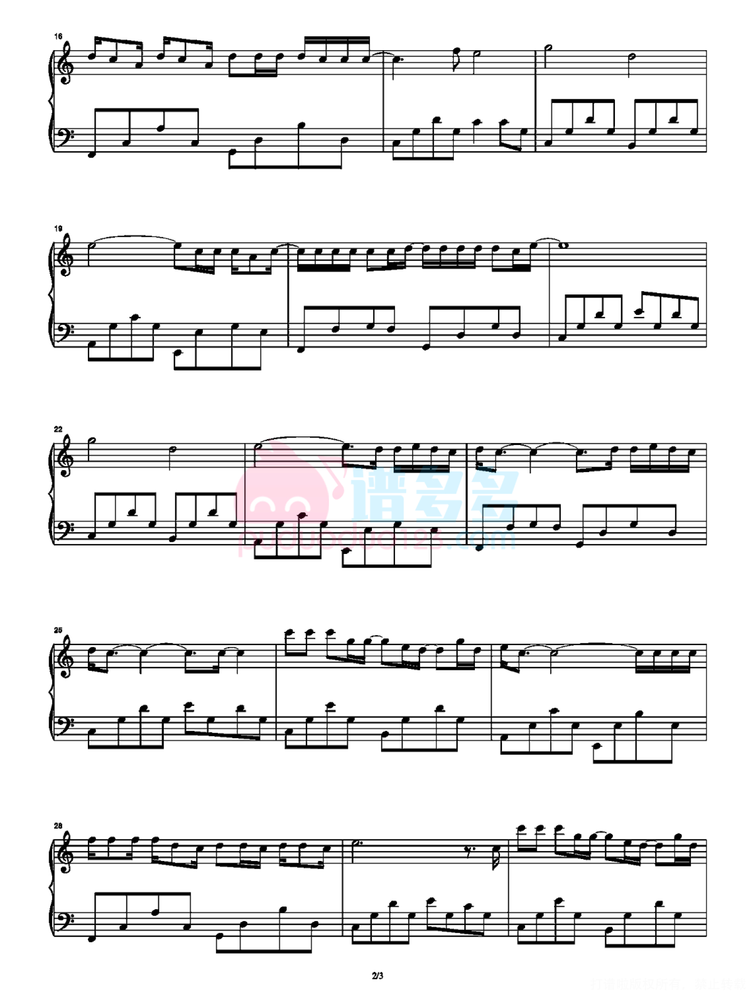 凡是琴谱网站内的版权保护水印,打印时,都会无水印。