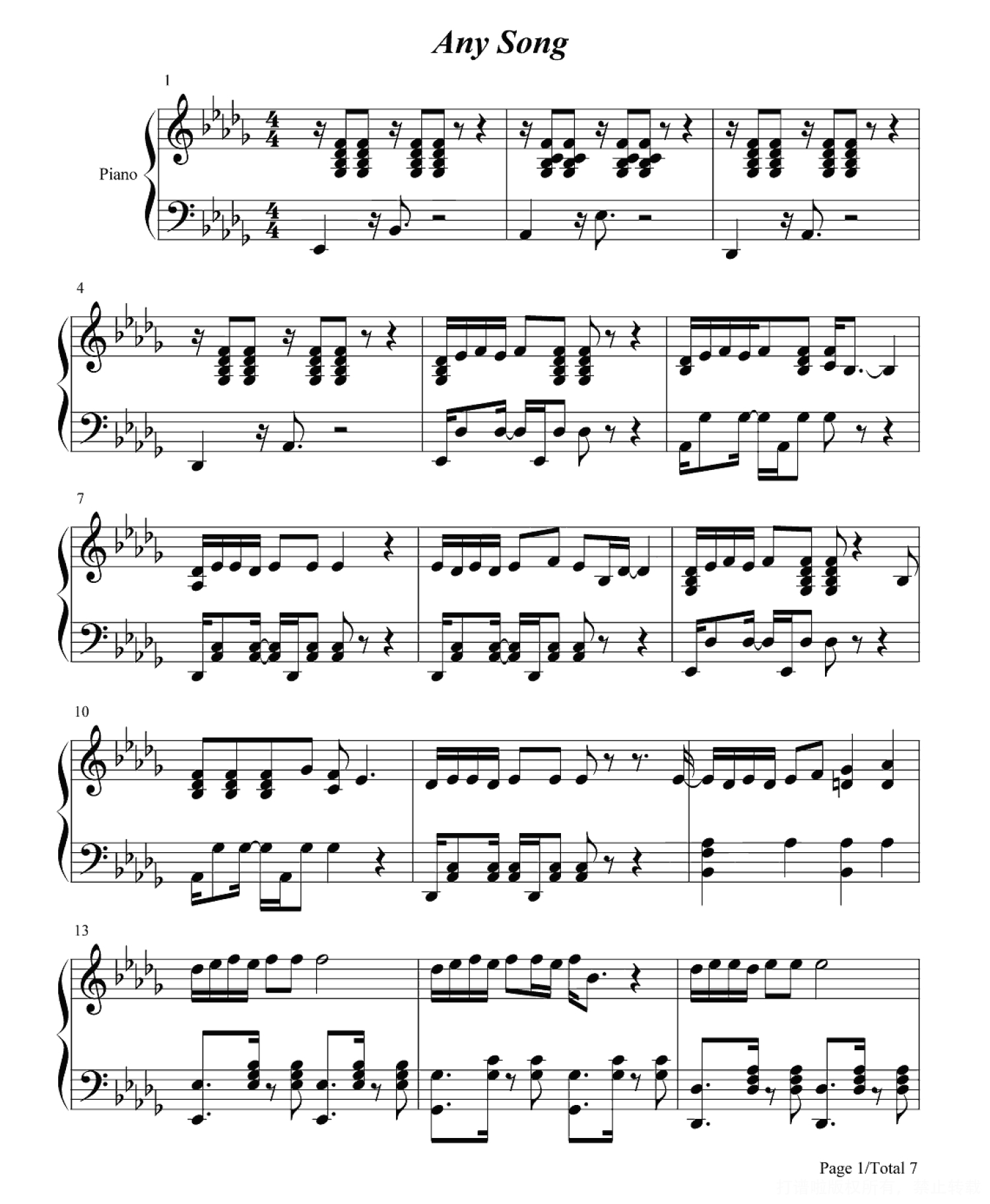 当前位置:琴谱网>钢琴谱>Any Song