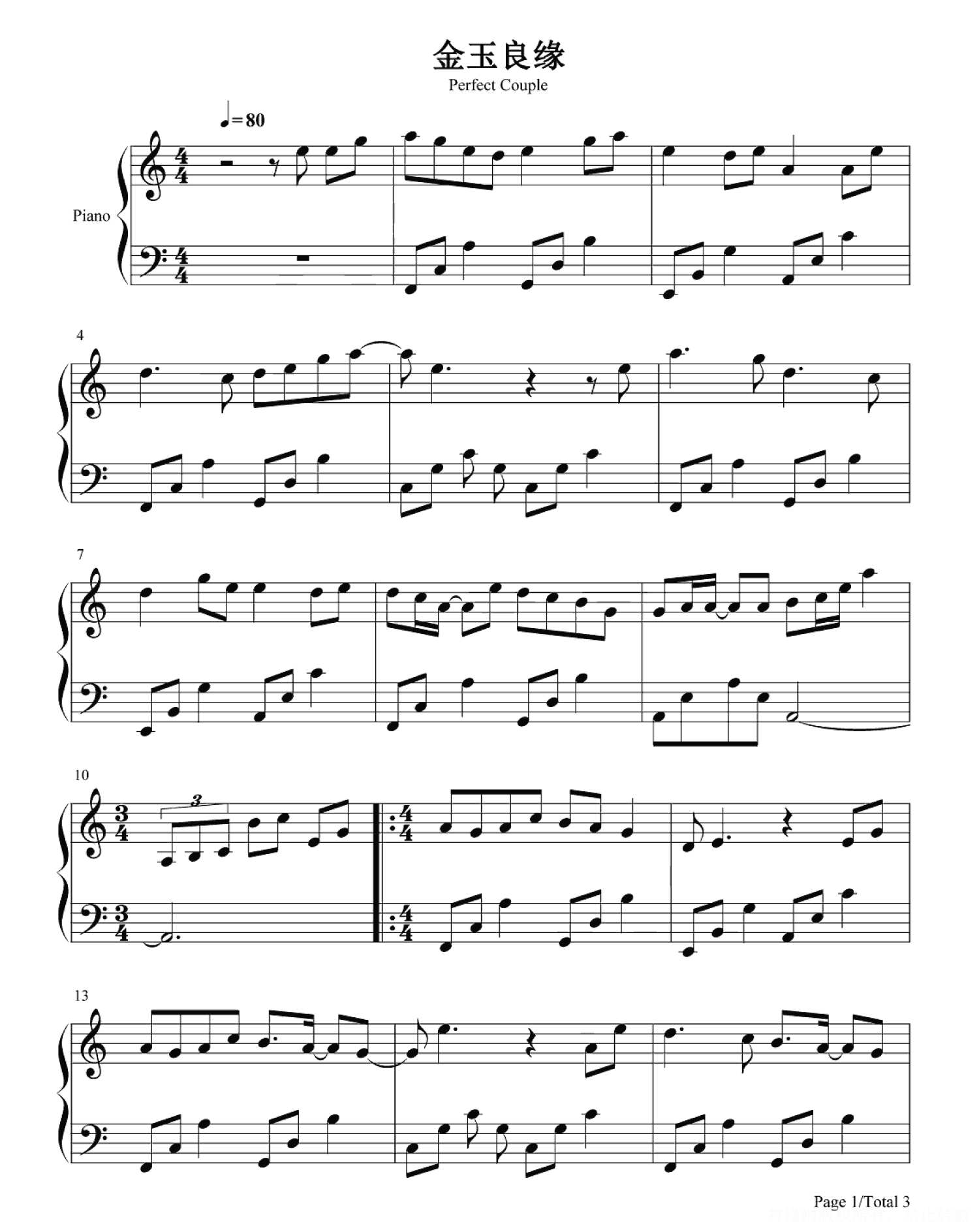 当前位置:琴谱网>钢琴谱>金玉良缘