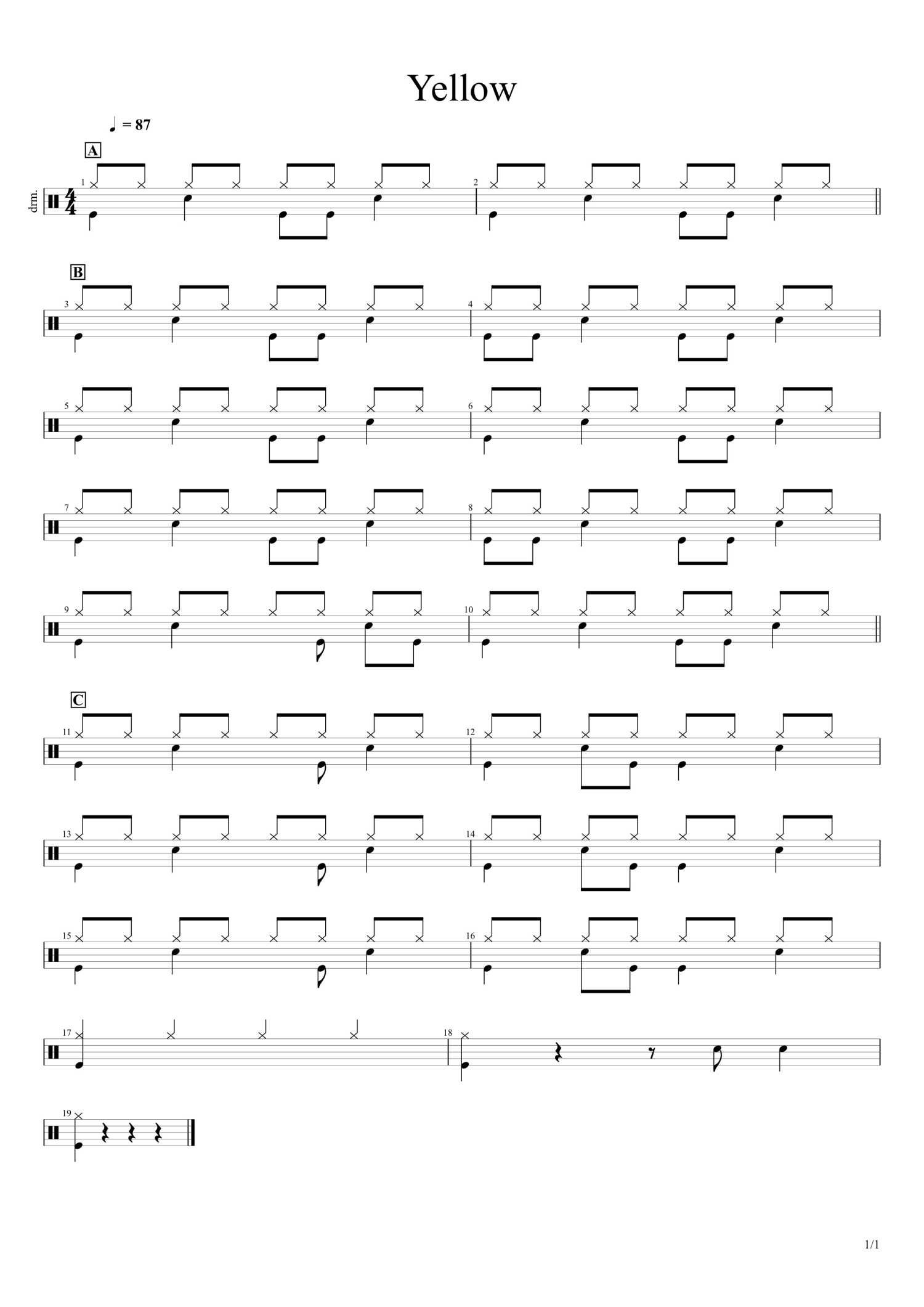 当前位置:琴谱网>架子鼓谱>Yellow