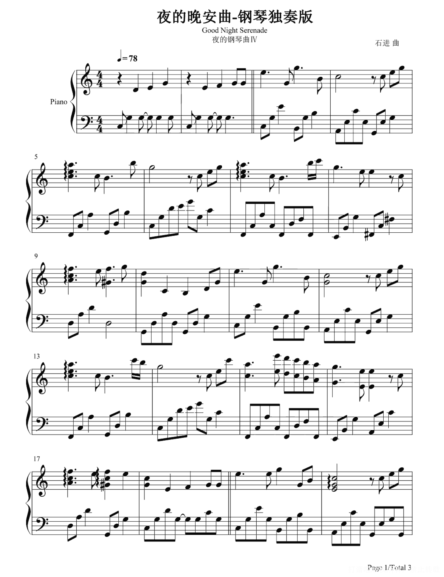 夜的晚安曲钢琴谱 - 石进
