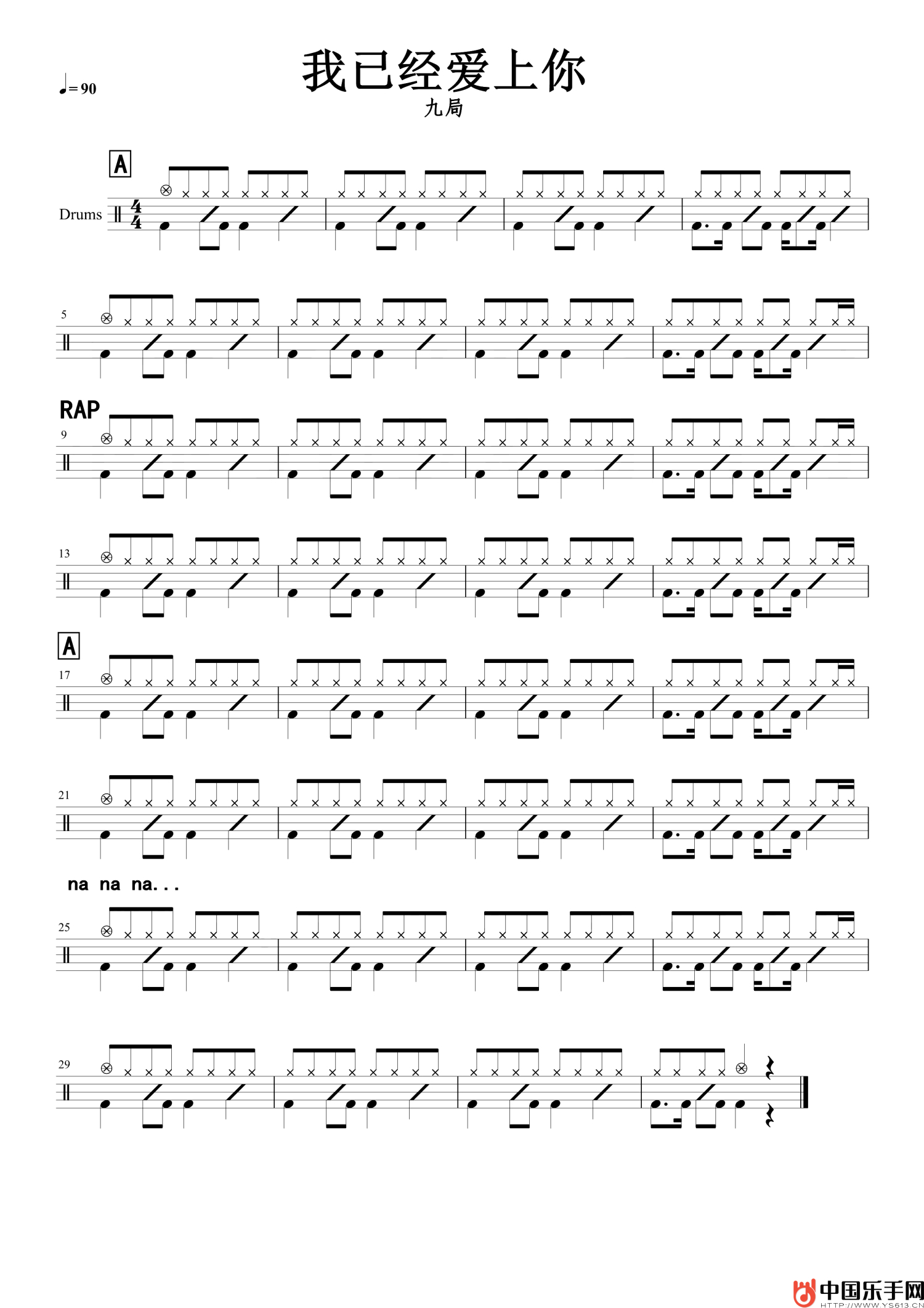 我已经爱上你鼓谱 - 九局 - 架子鼓谱