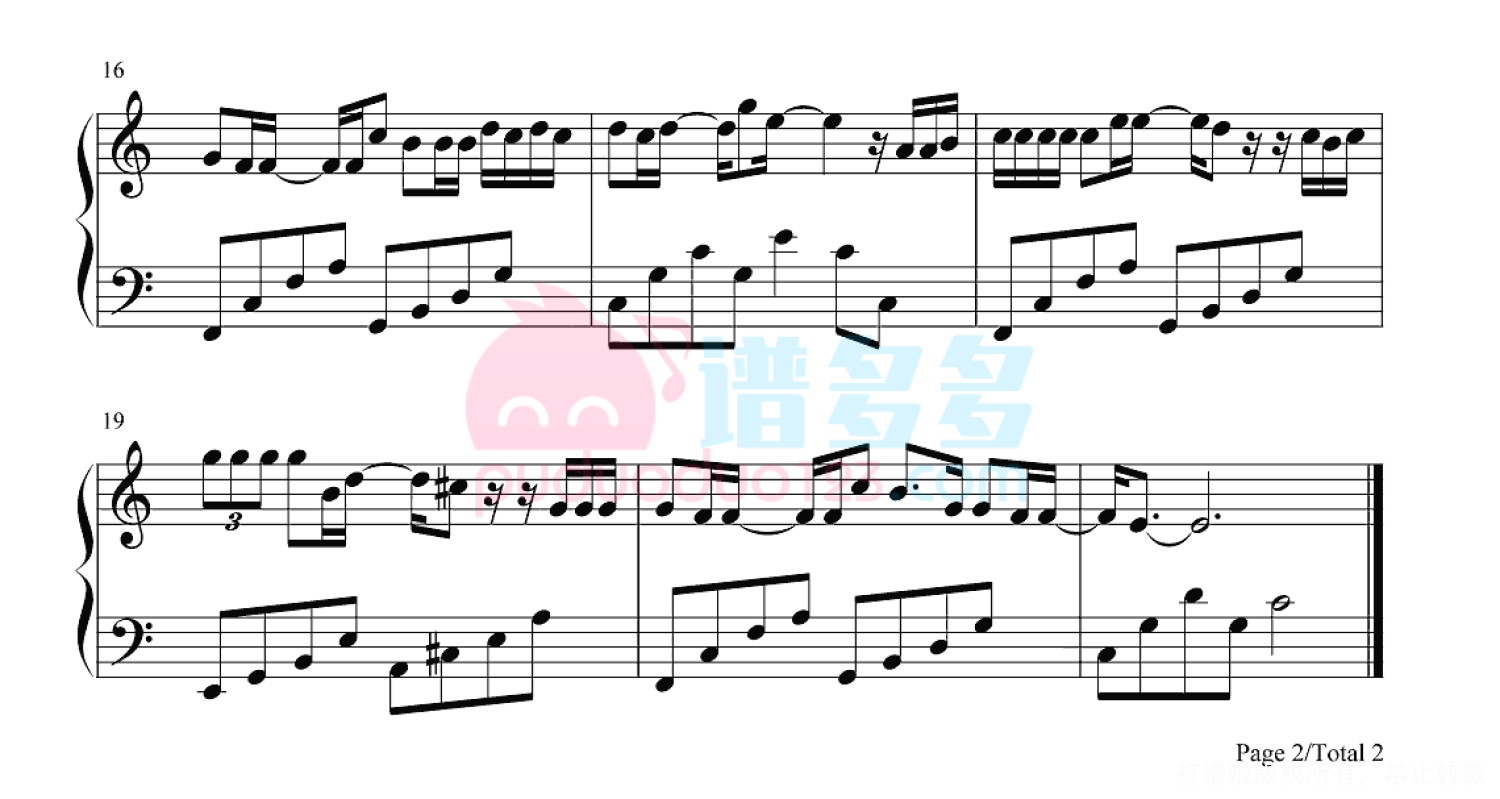 凡是琴谱网站内的版权保护水印,打印时,都会无水印。