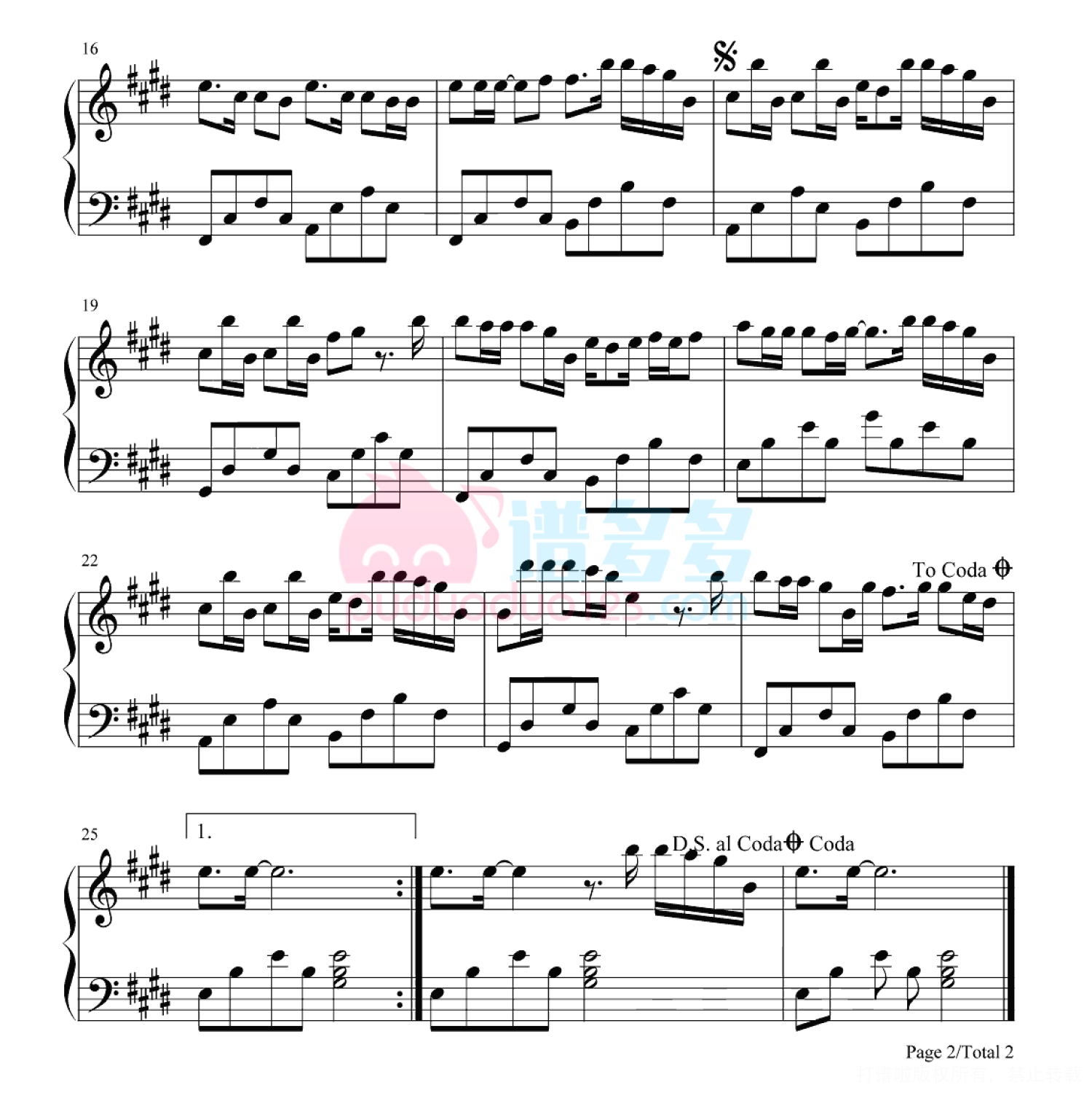 凡是琴谱网站内的版权保护水印,打印时,都会无水印。