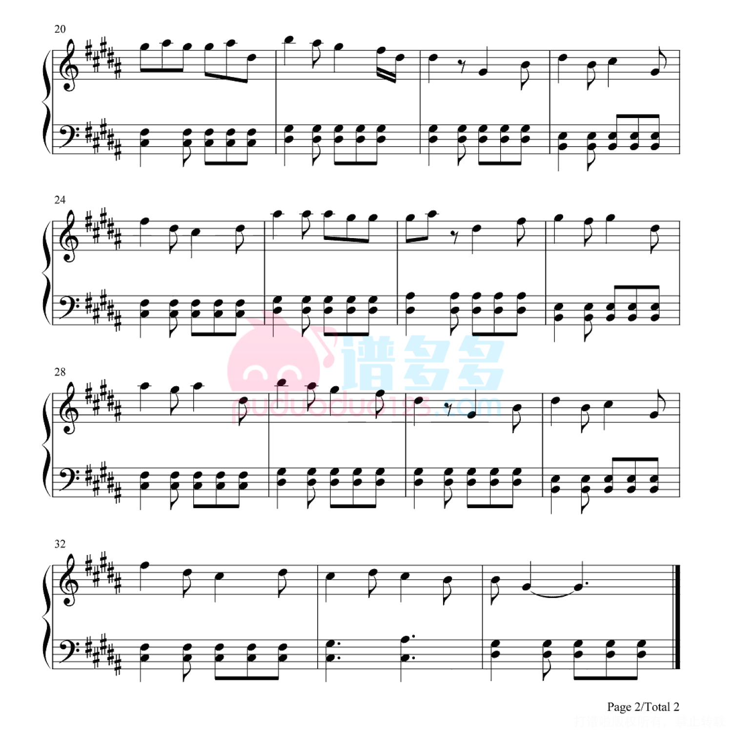 凡是琴谱网站内的版权保护水印,打印时,都会无水印。