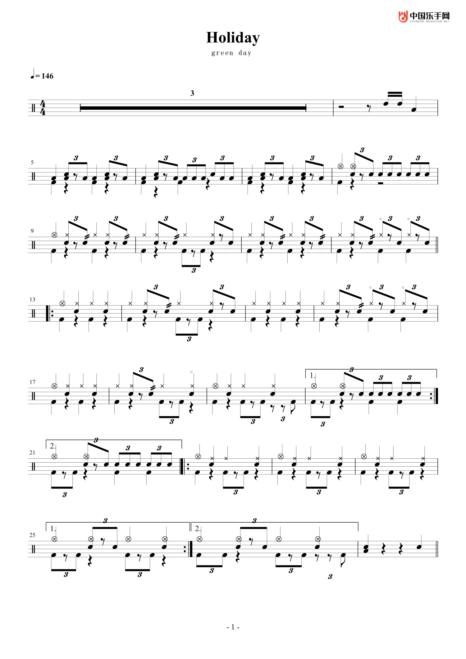 Holiday鼓谱 - Green Day - 架子鼓谱