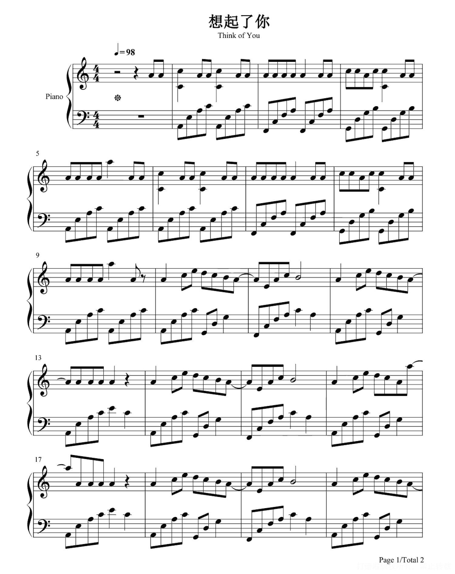 曲谱介绍: 程响《想起了你》钢琴谱,由谱友精心编配制谱,完整版共2张PNG格式图片五线谱。除了《想起了你》高清版钢琴谱,打谱啦还收录了程响更多热门歌曲不同类型或格式的曲谱,欢迎您浏览及分享。《想起了你》这首歌曲很有温度,能驱走心里那份冰凉的记忆。程响的强势回归,又一次潇洒的展现了自己独特嗓音。