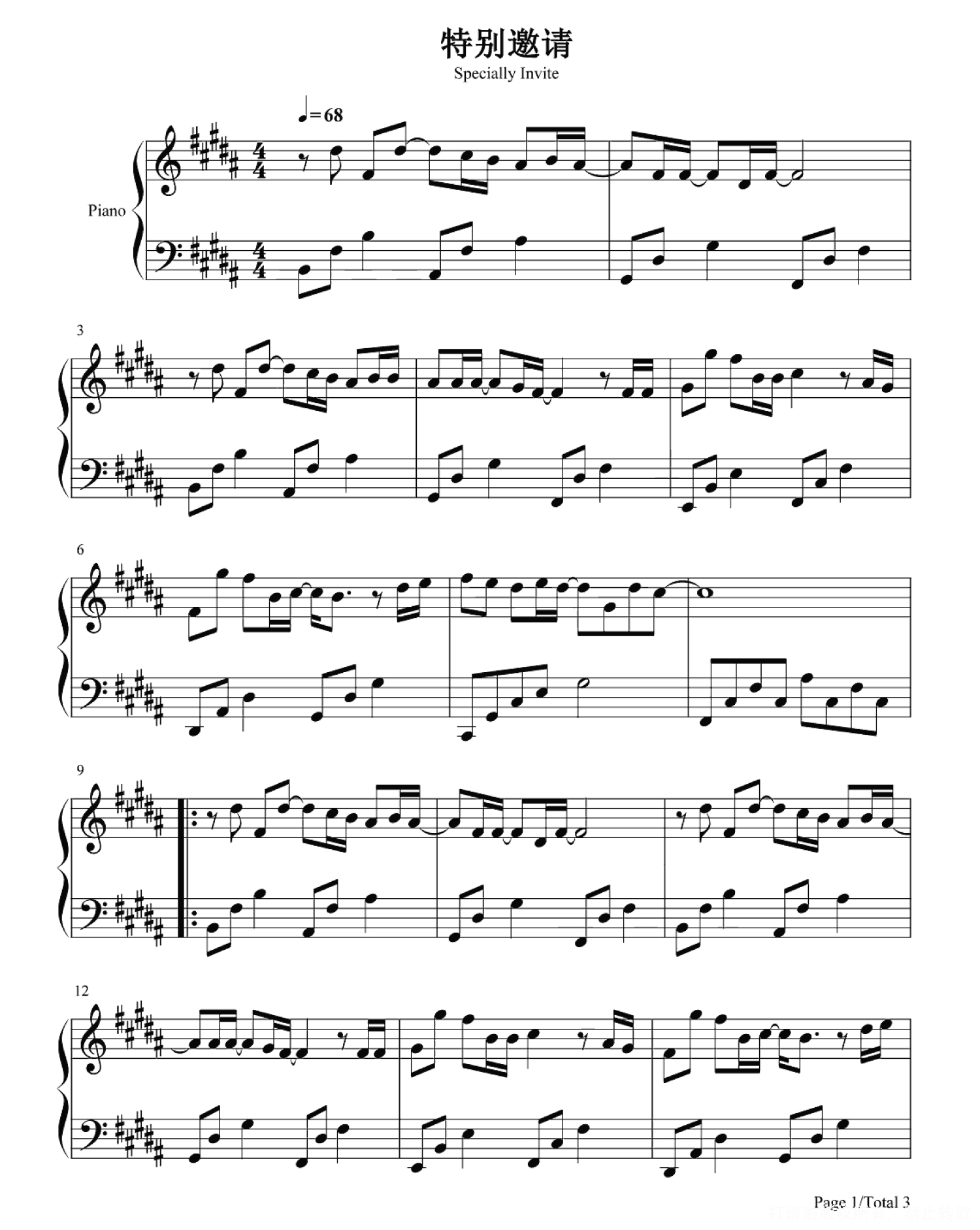 当前位置:琴谱网>钢琴谱>特别邀请