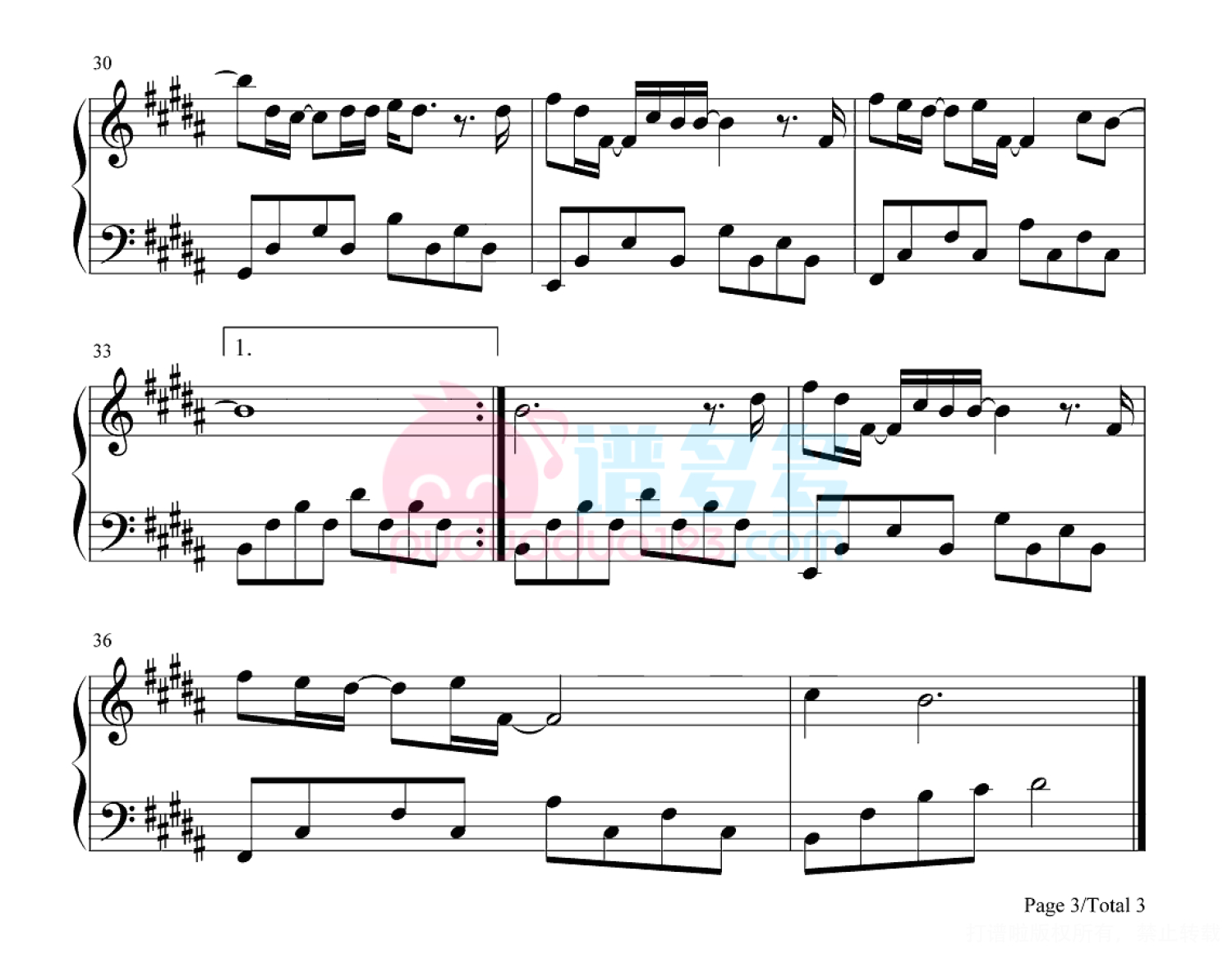 凡是琴谱网站内的版权保护水印,打印时,都会无水印。