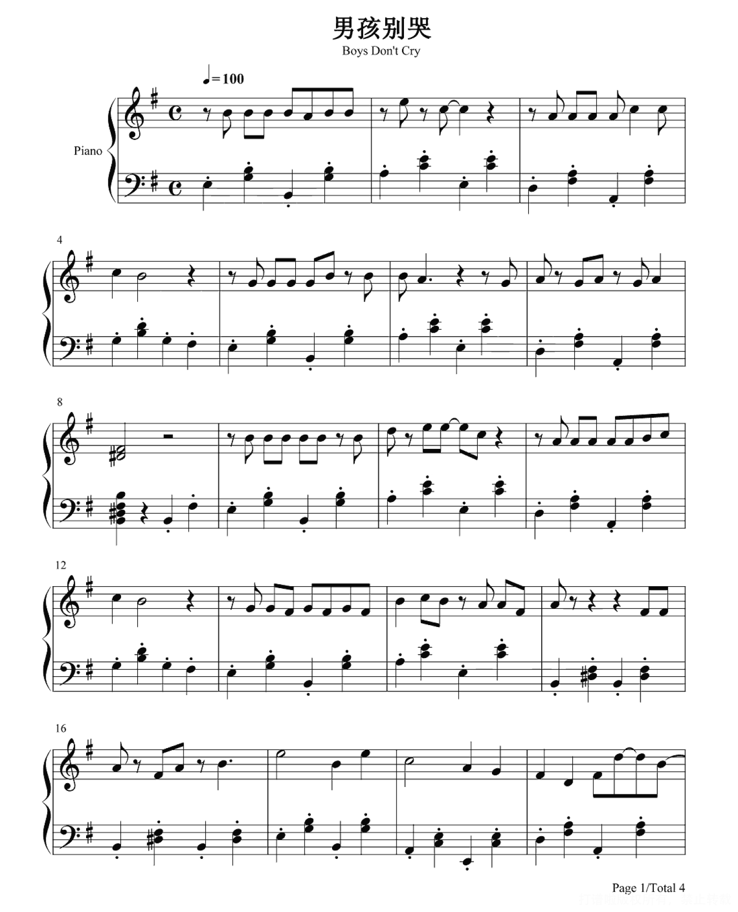 当前位置:琴谱网>钢琴谱>男孩别哭