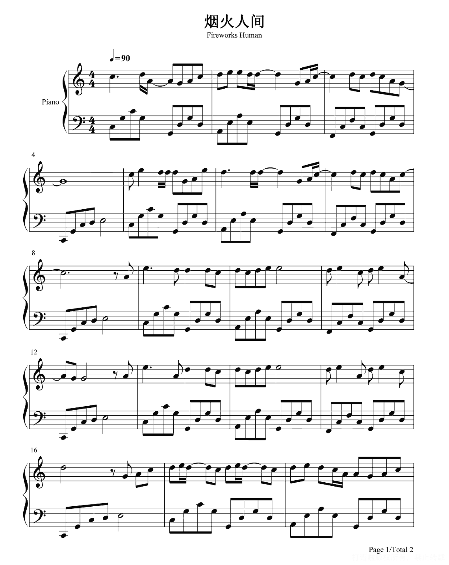 当前位置:琴谱网>钢琴谱>烟火人间