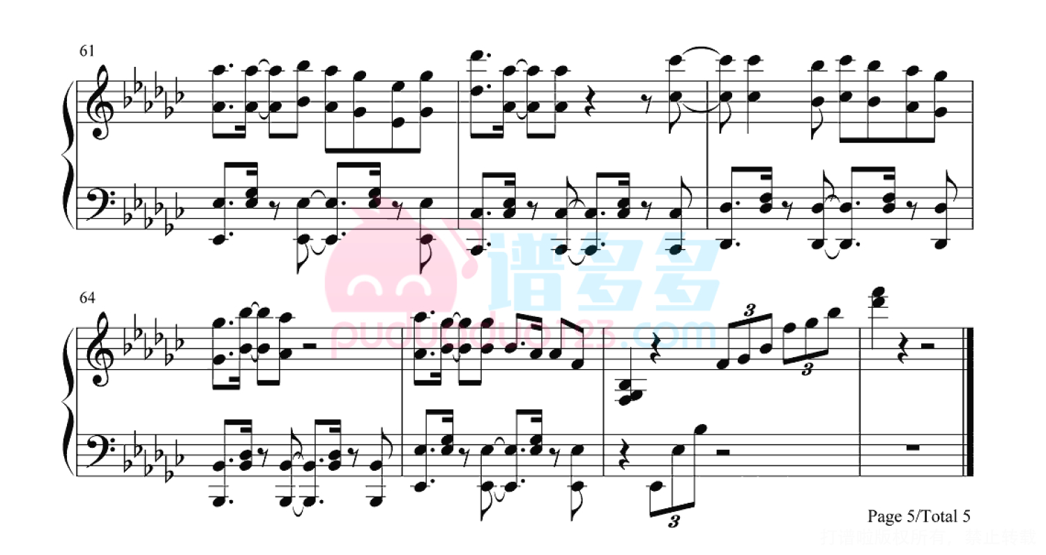 凡是琴谱网站内的版权保护水印,打印时,都会无水印。
