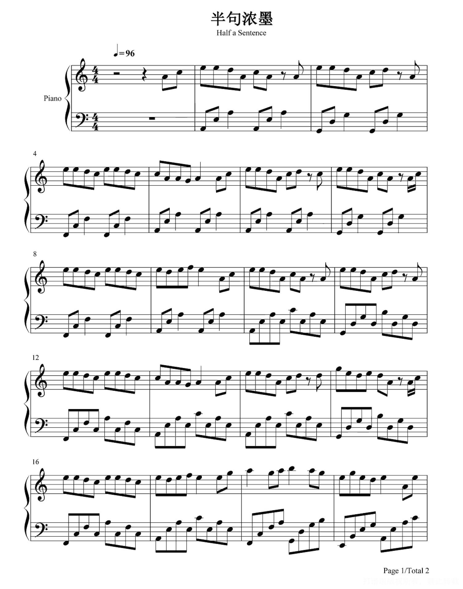 半句浓墨钢琴谱