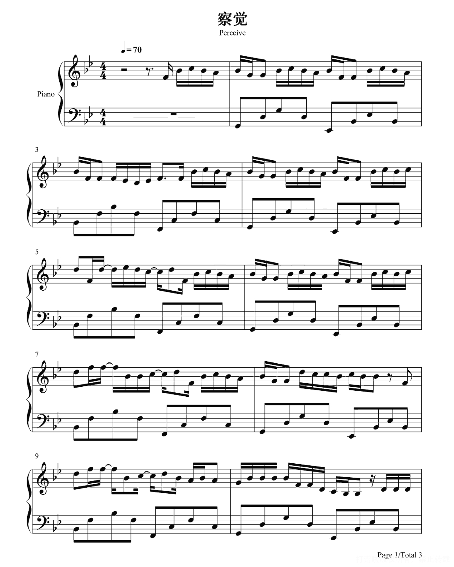察觉钢琴谱
