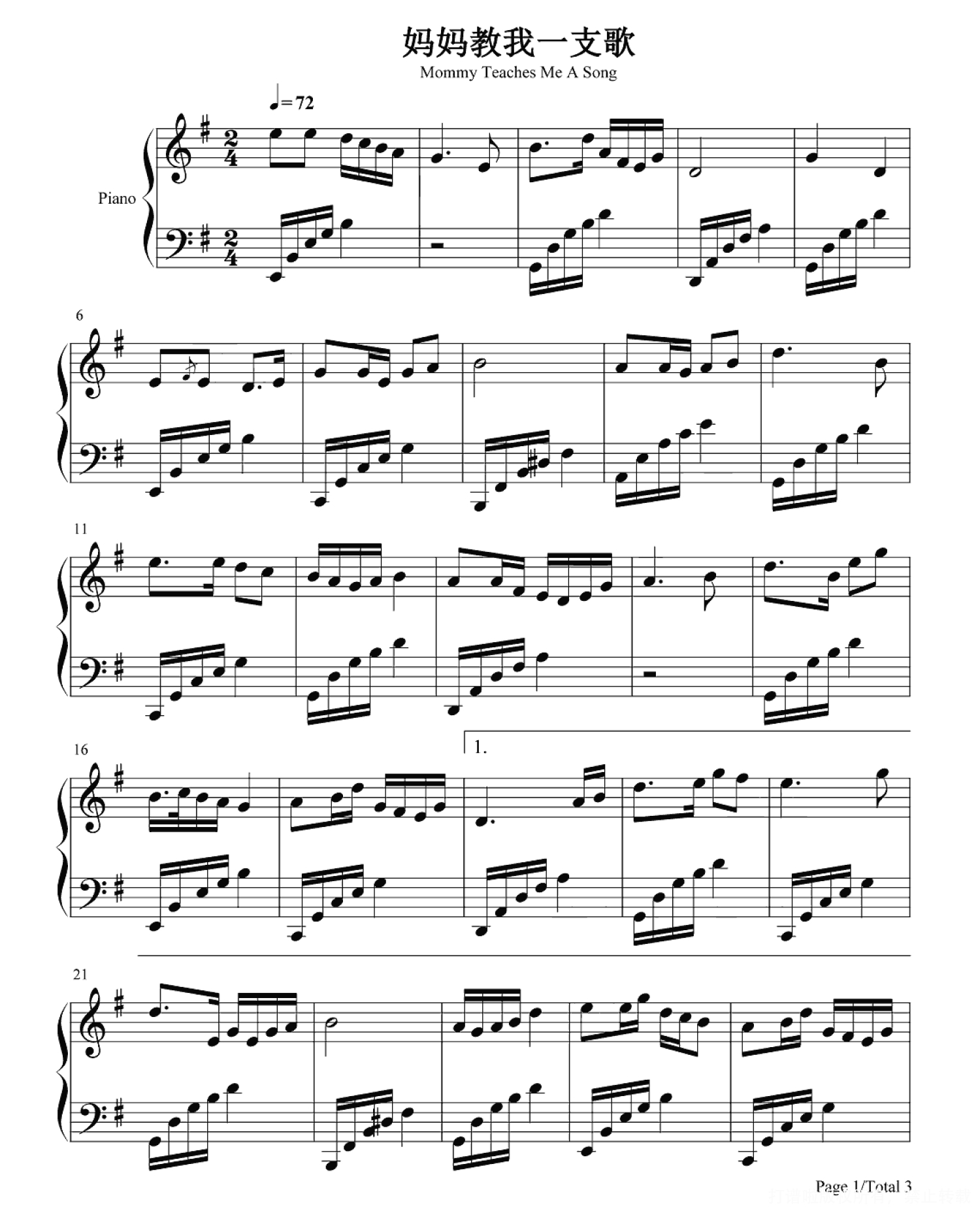 当前位置:琴谱网>钢琴谱>妈妈教我一支歌