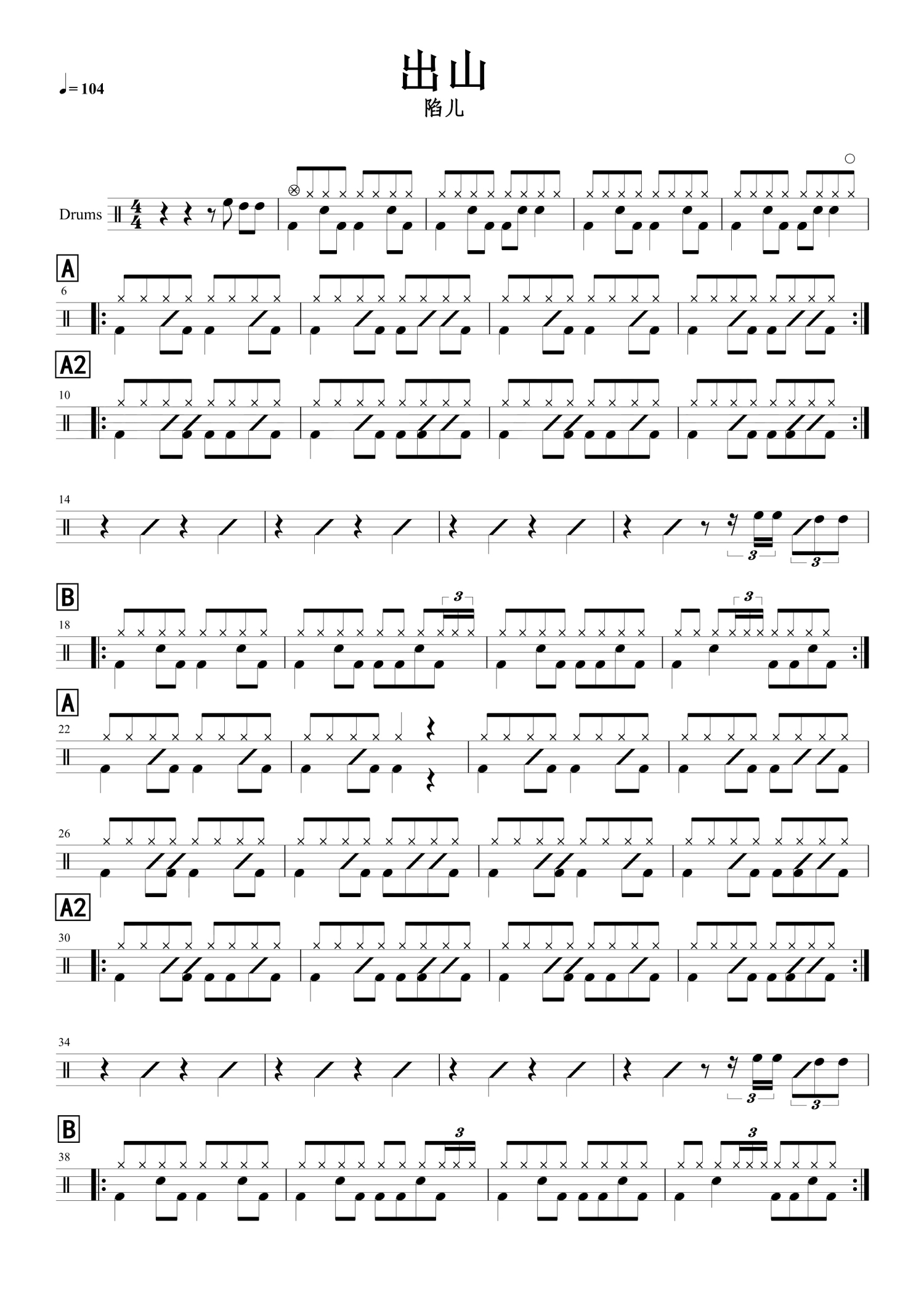 • 出山鼓谱 - 花粥/王胜男 - 架子鼓谱第1张