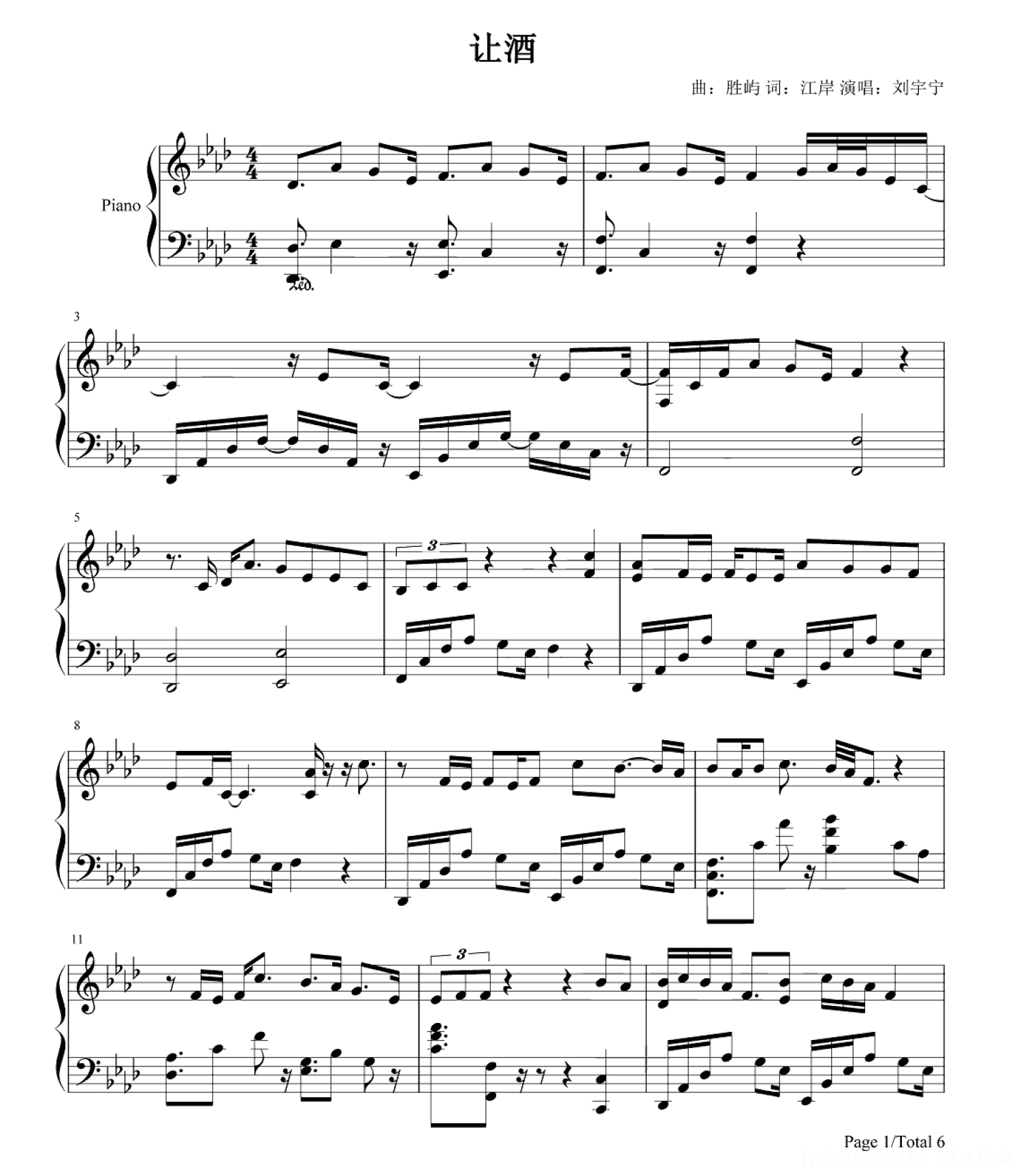 当前位置:琴谱网>钢琴谱>让酒