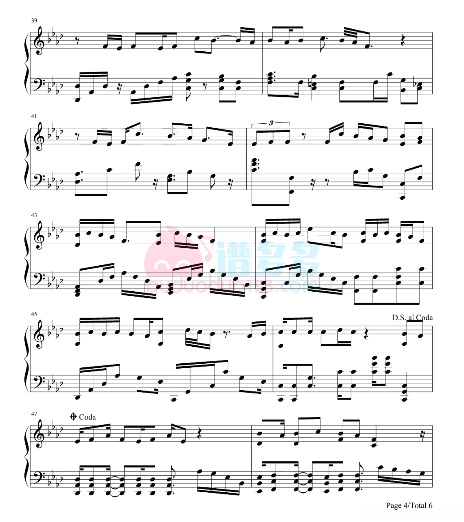 凡是琴谱网站内的版权保护水印,打印时,都会无水印。
