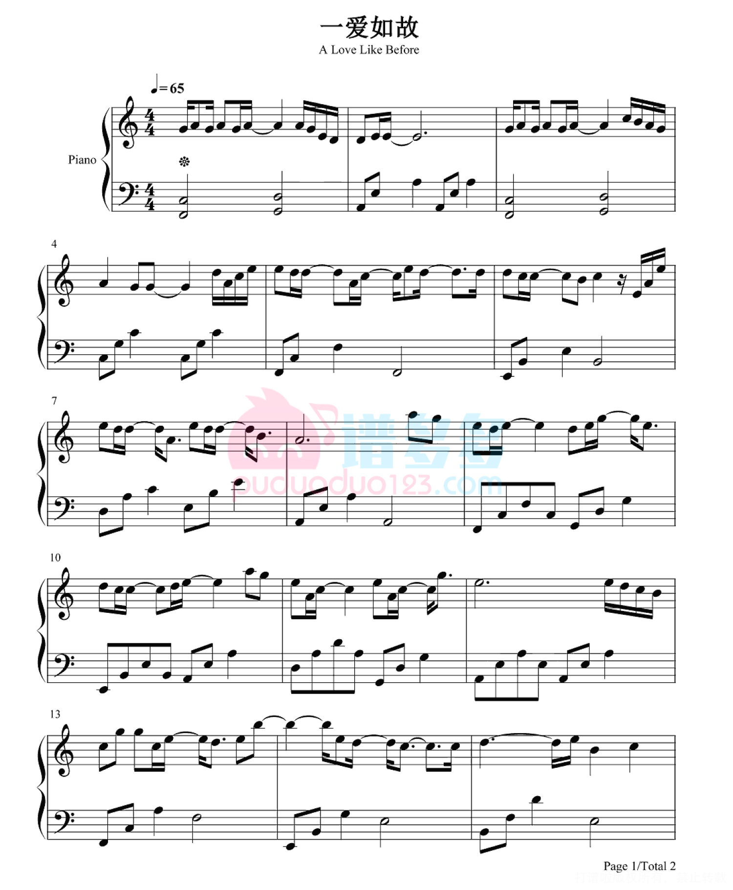 当前位置:琴谱网>钢琴谱>一爱如故