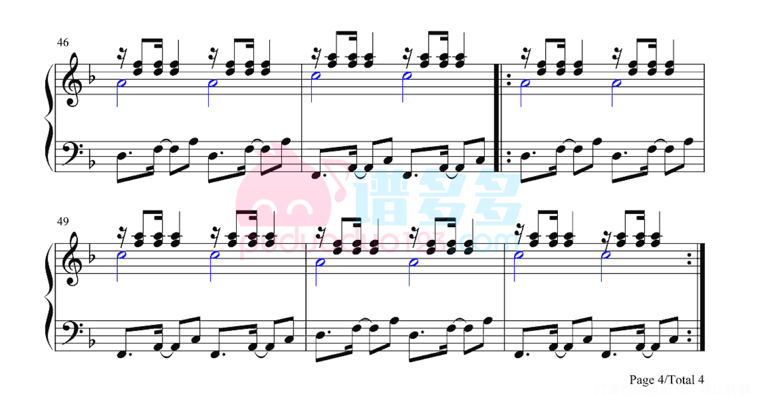 凡是琴谱网站内的版权保护水印,打印时,都会无水印。