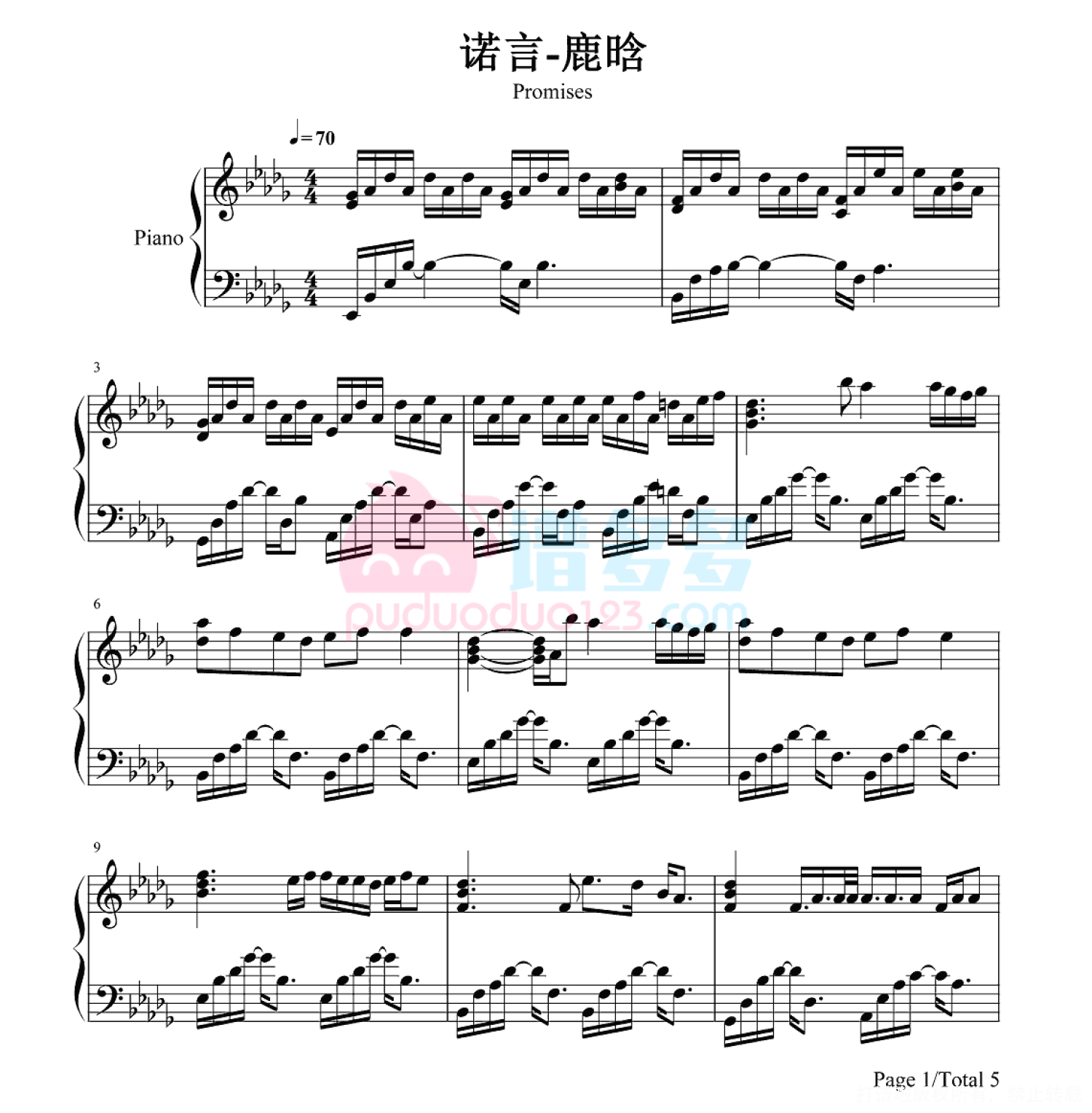 曲谱介绍: 本曲谱是高清版《诺言》钢琴谱,由谱友提供并在打谱啦和大家分享,共5张PNG格式图片五线谱。《诺言》是由朱婧汐填词,Santell、Djemba Djemba谱曲,鹿晗演唱的抒情歌曲。打谱啦还收录了《诺言》的简谱、吉他谱等高清曲谱,欢迎查询。《诺言》是一首甜而不腻的情歌,曲风十分清新。歌曲以细碎清爽的节奏将相遇到触电的幸福感揉进旋律,像融化掉的糖浆浇在鹿晗的嗓音上,十分悦耳。