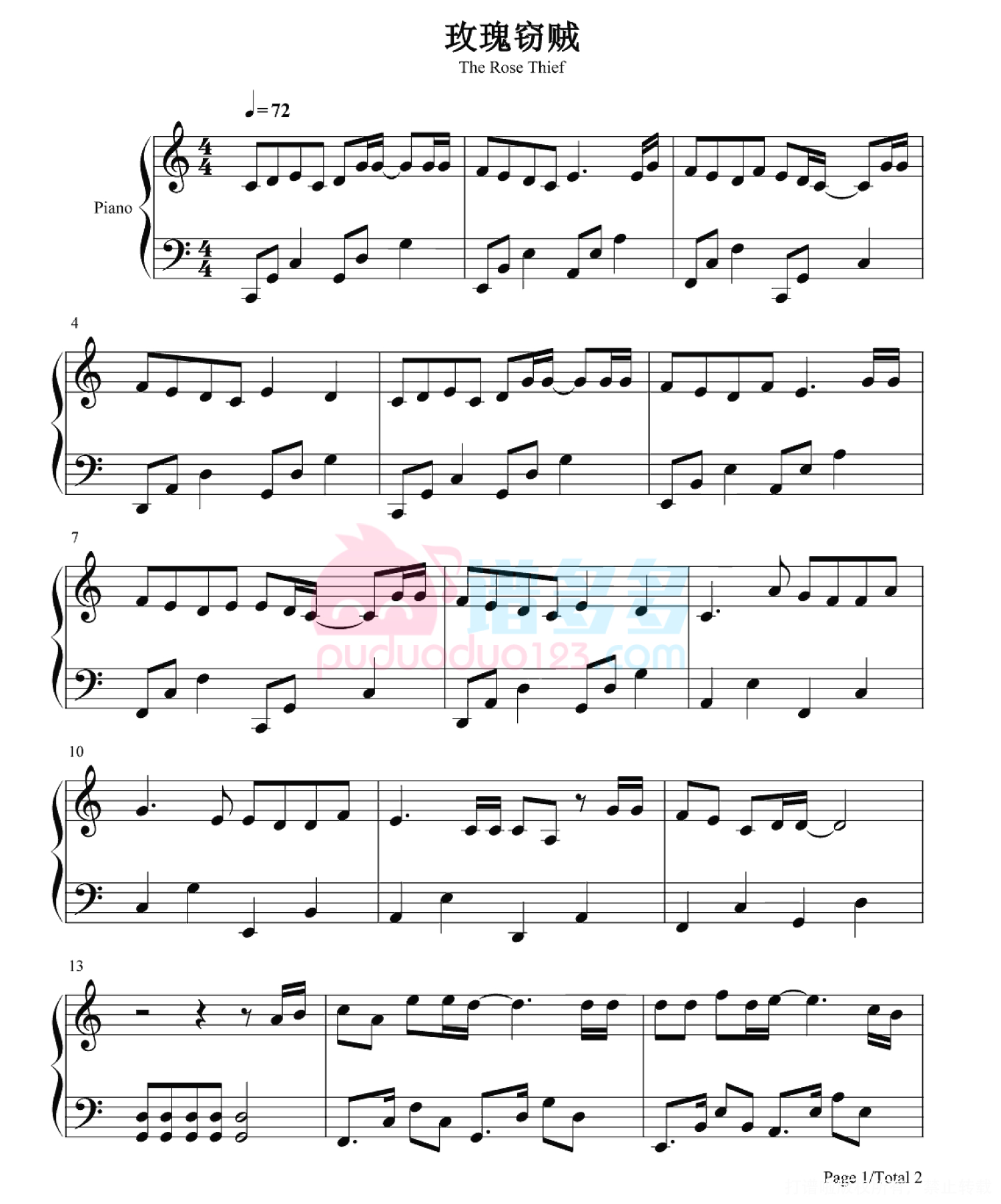 当前位置:琴谱网>钢琴谱>玫瑰窃贼