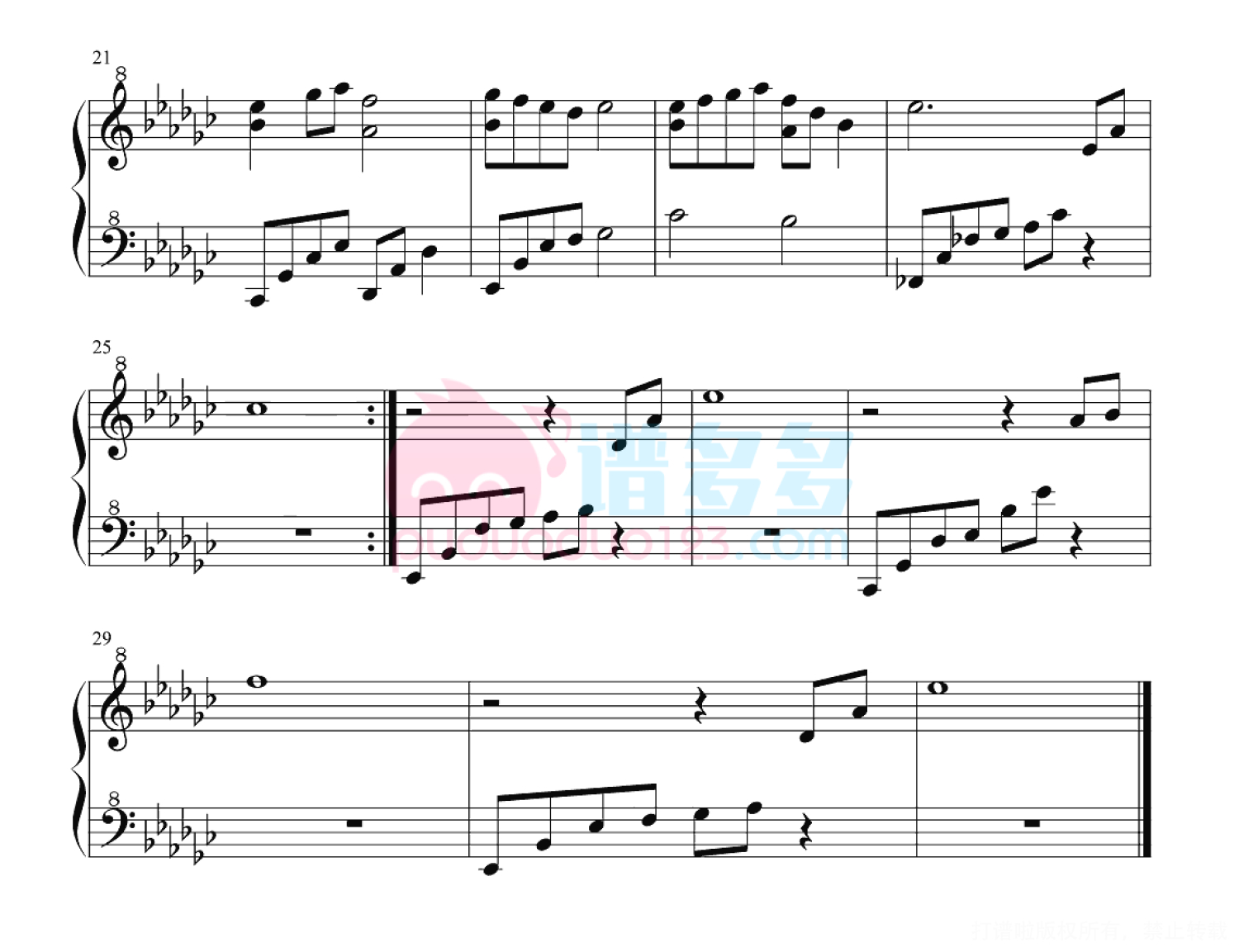 凡是琴谱网站内的版权保护水印,打印时,都会无水印。