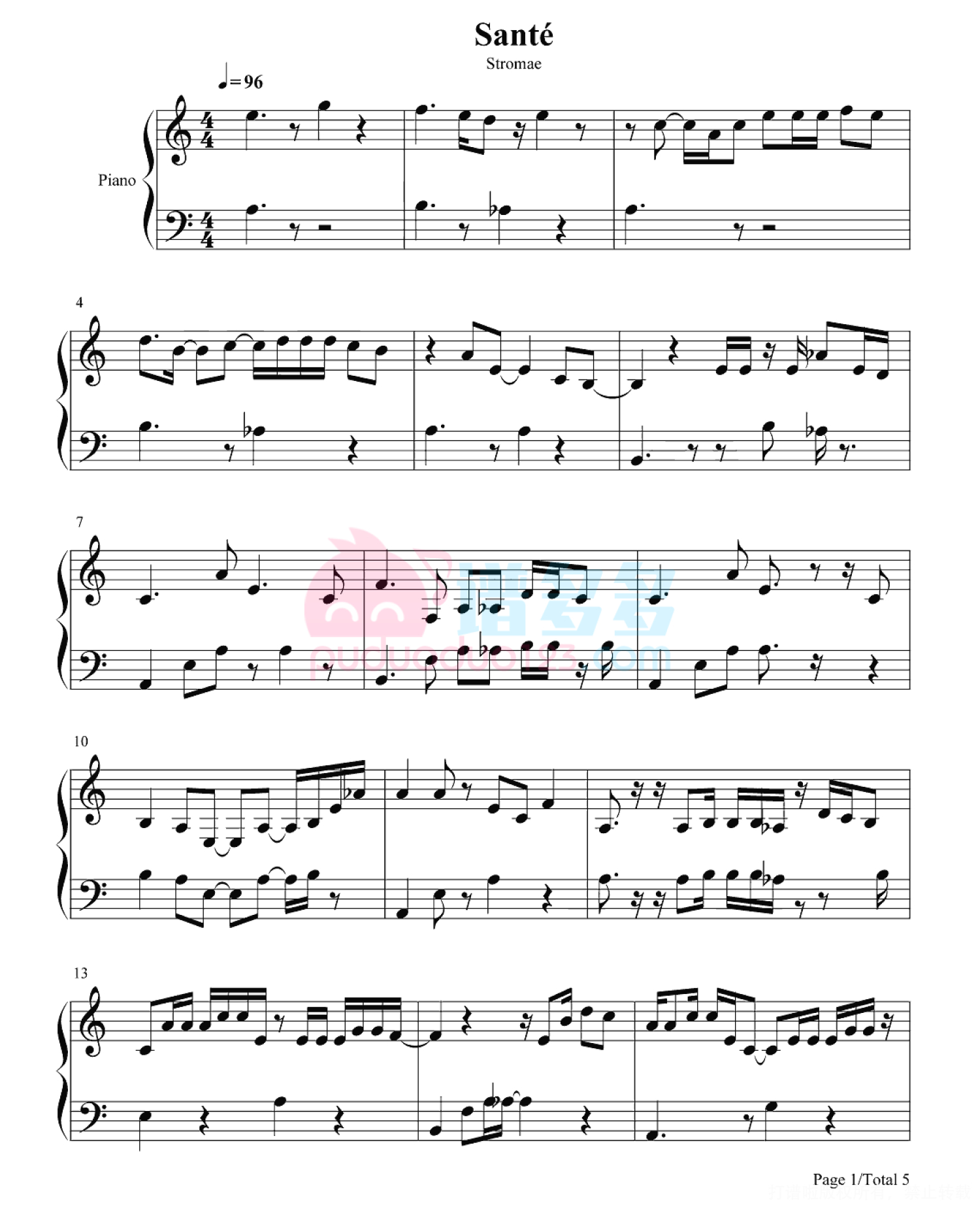 Santé钢琴谱 - Stromae