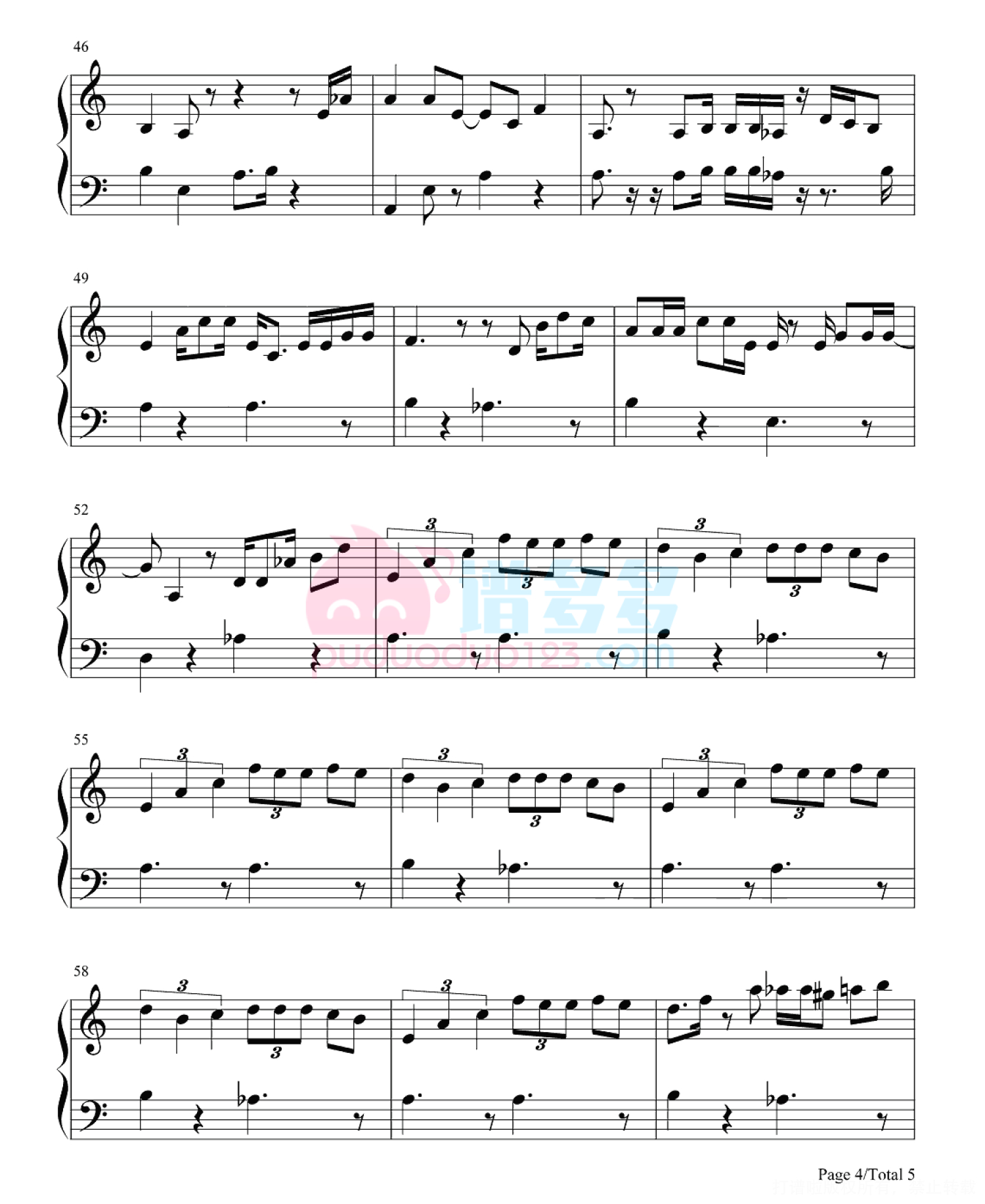 凡是琴谱网站内的版权保护水印,打印时,都会无水印。