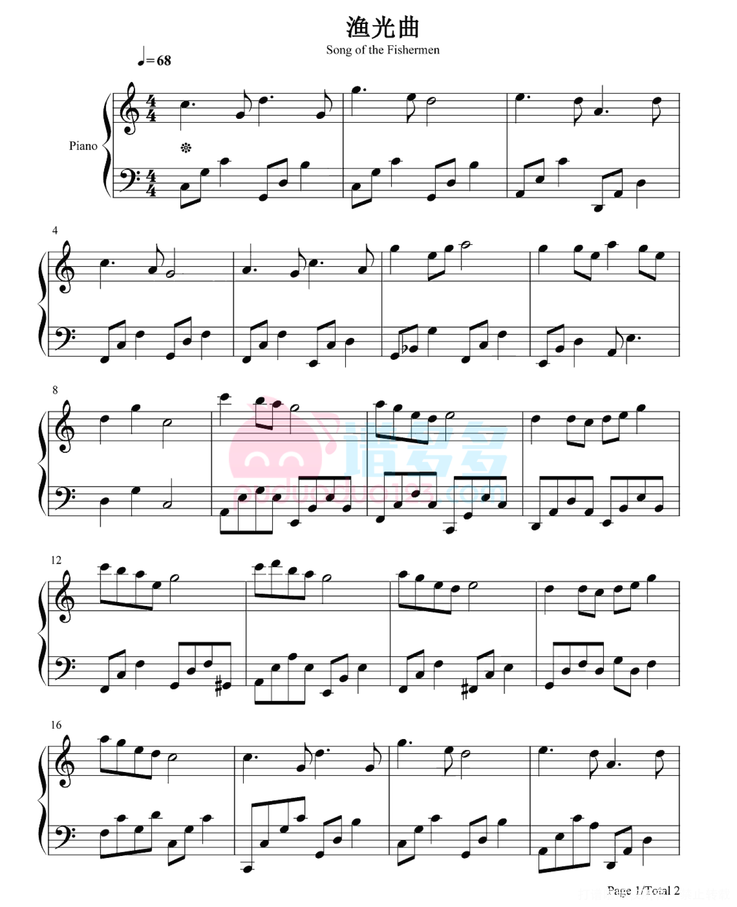 琴谱网尊重作者版权,不会私自去掉作者提供的水印,此类图谱如需去掉水印,请自行去除后,通过站内自助上传打印即可。