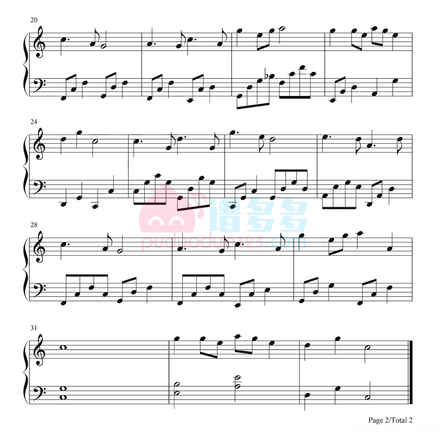 凡是琴谱网站内的版权保护水印,打印时,都会无水印。