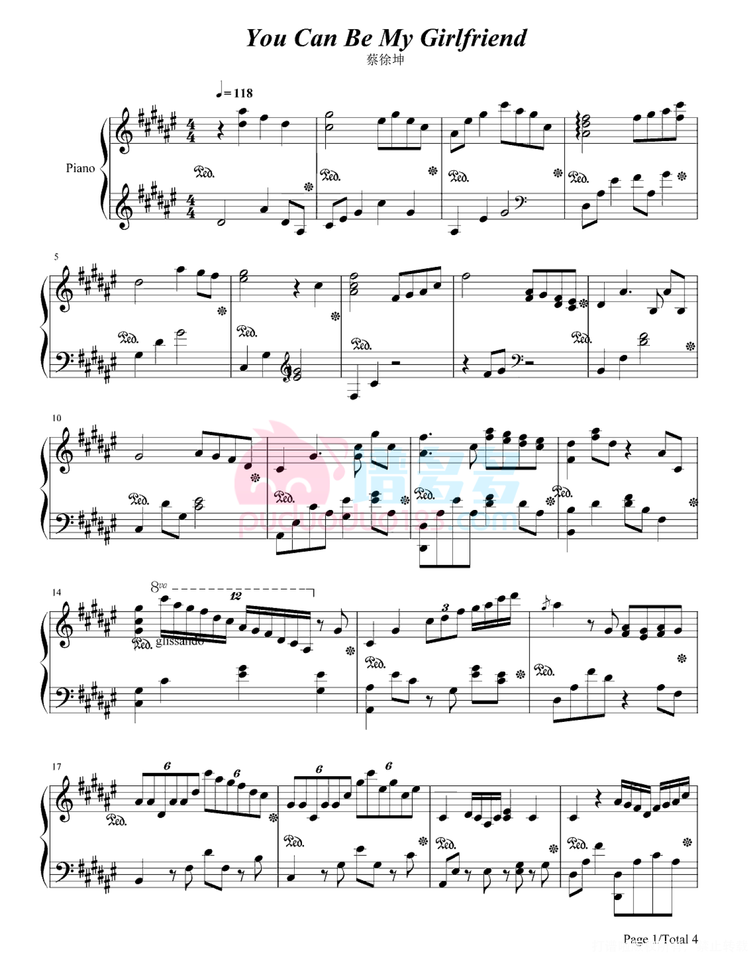 曲谱介绍: 打谱啦为您提供《You Can Be My Girlfriend》的高清版钢琴谱,由谱友精心编配制谱并分享。《You Can Be My Girlfriend》是由蔡徐坤演唱,并参与作词,作曲的一首歌曲。打谱啦还提供了蔡徐坤更多热门歌曲的吉他谱、简谱等曲谱,欢迎查询。