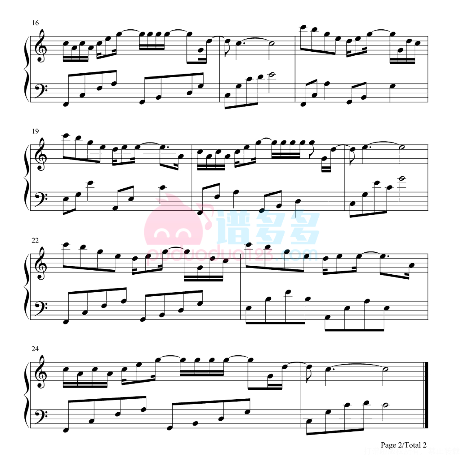凡是琴谱网站内的版权保护水印,打印时,都会无水印。