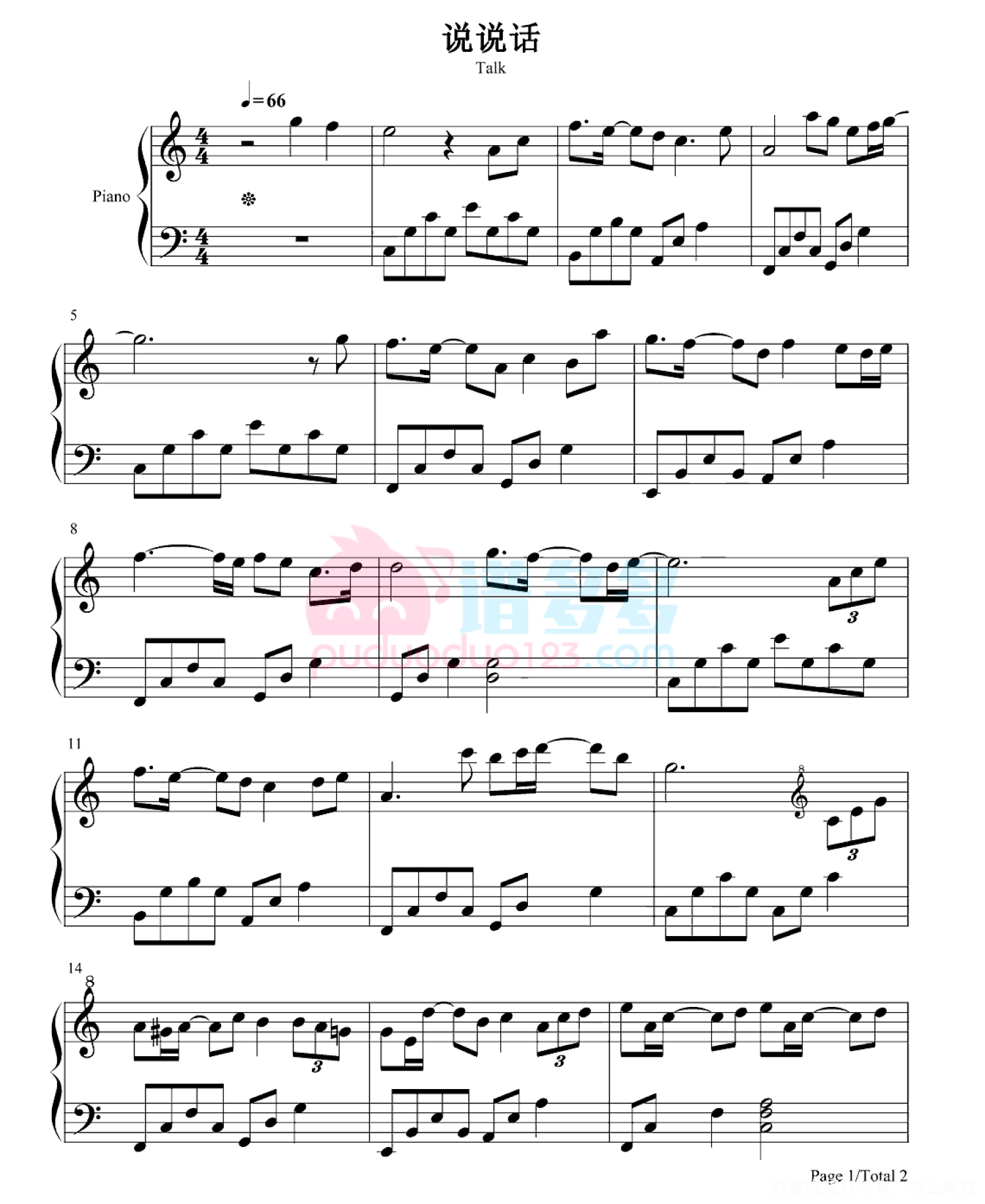 当前位置:琴谱网>钢琴谱>说说话
