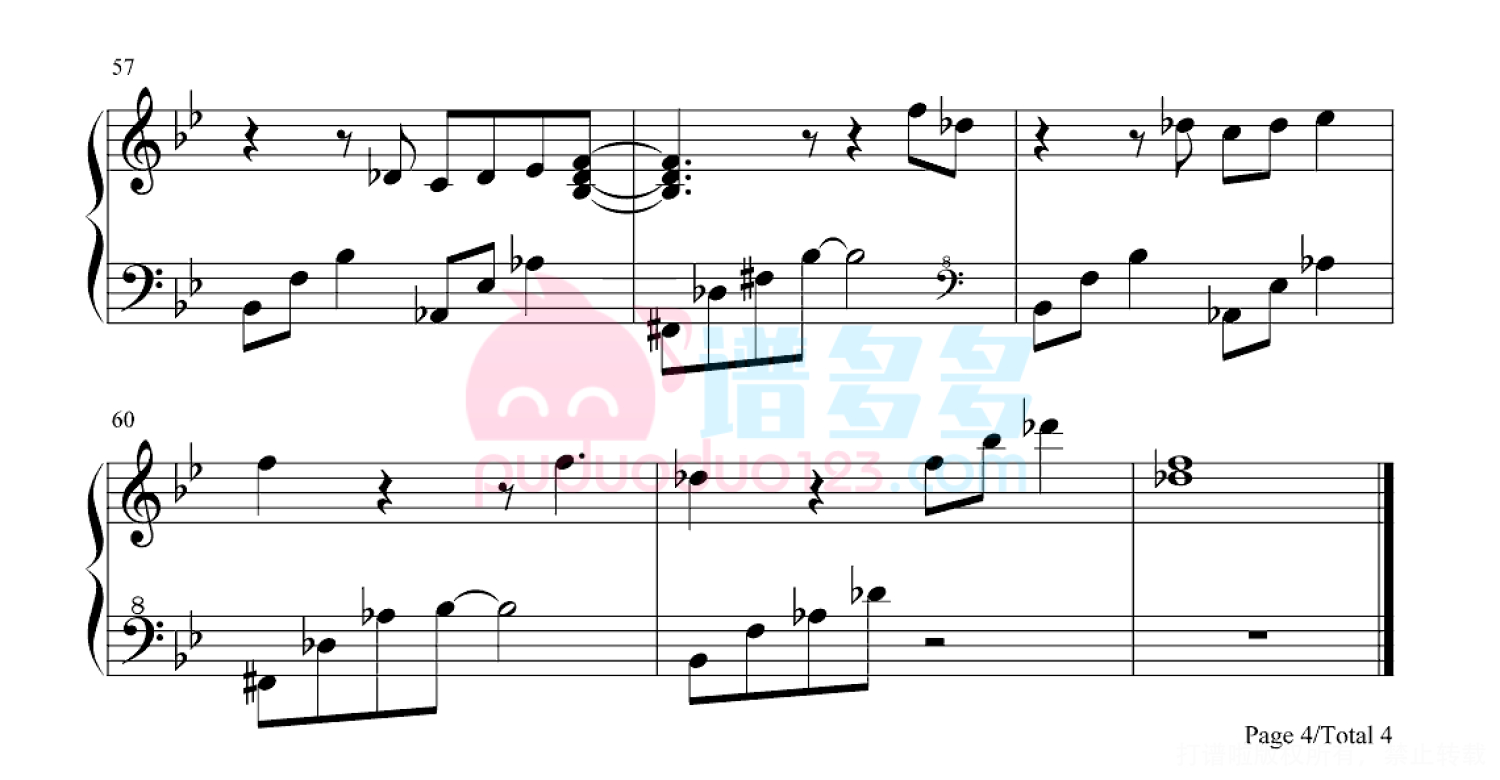 琴谱网尊重作者版权,不会私自去掉作者提供的水印,此类图谱如需去掉水印,请自行去除后,通过站内自助上传打印即可。
