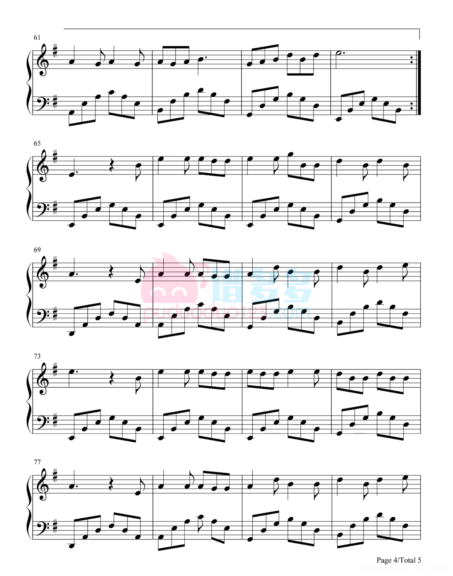 凡是琴谱网站内的版权保护水印,打印时,都会无水印。