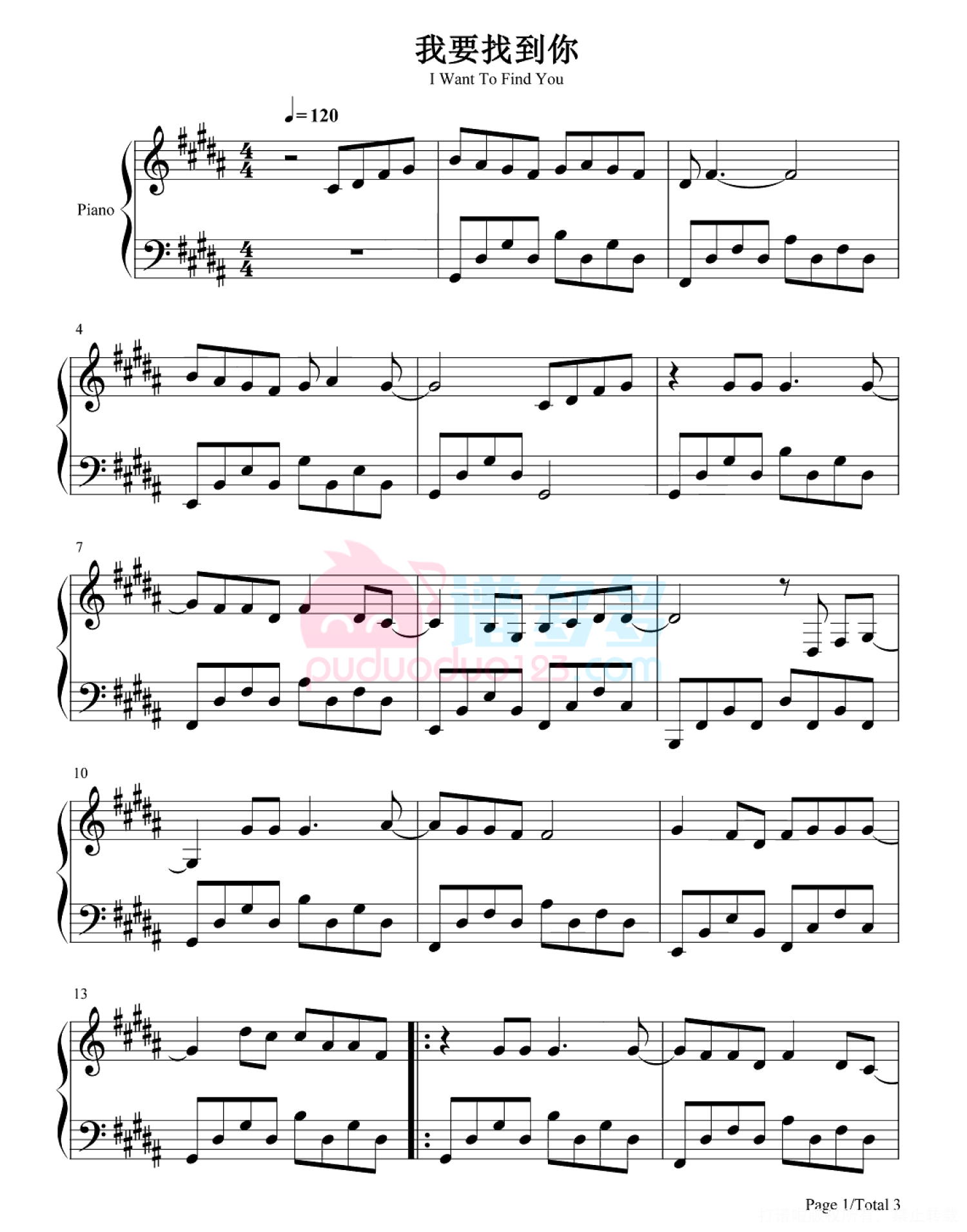 我要找到你钢琴谱 - 陈明