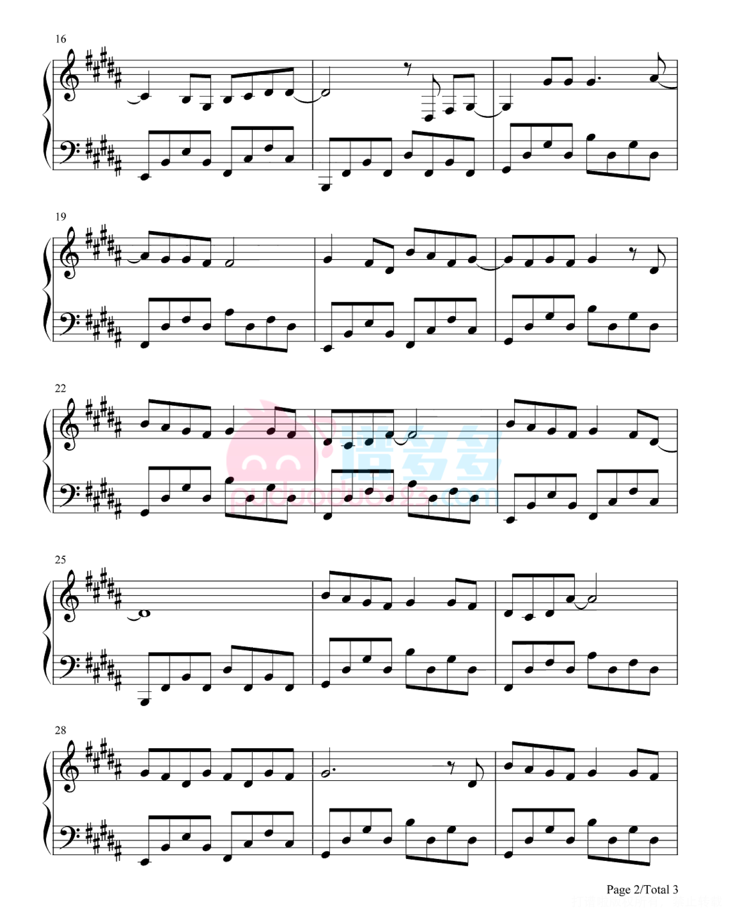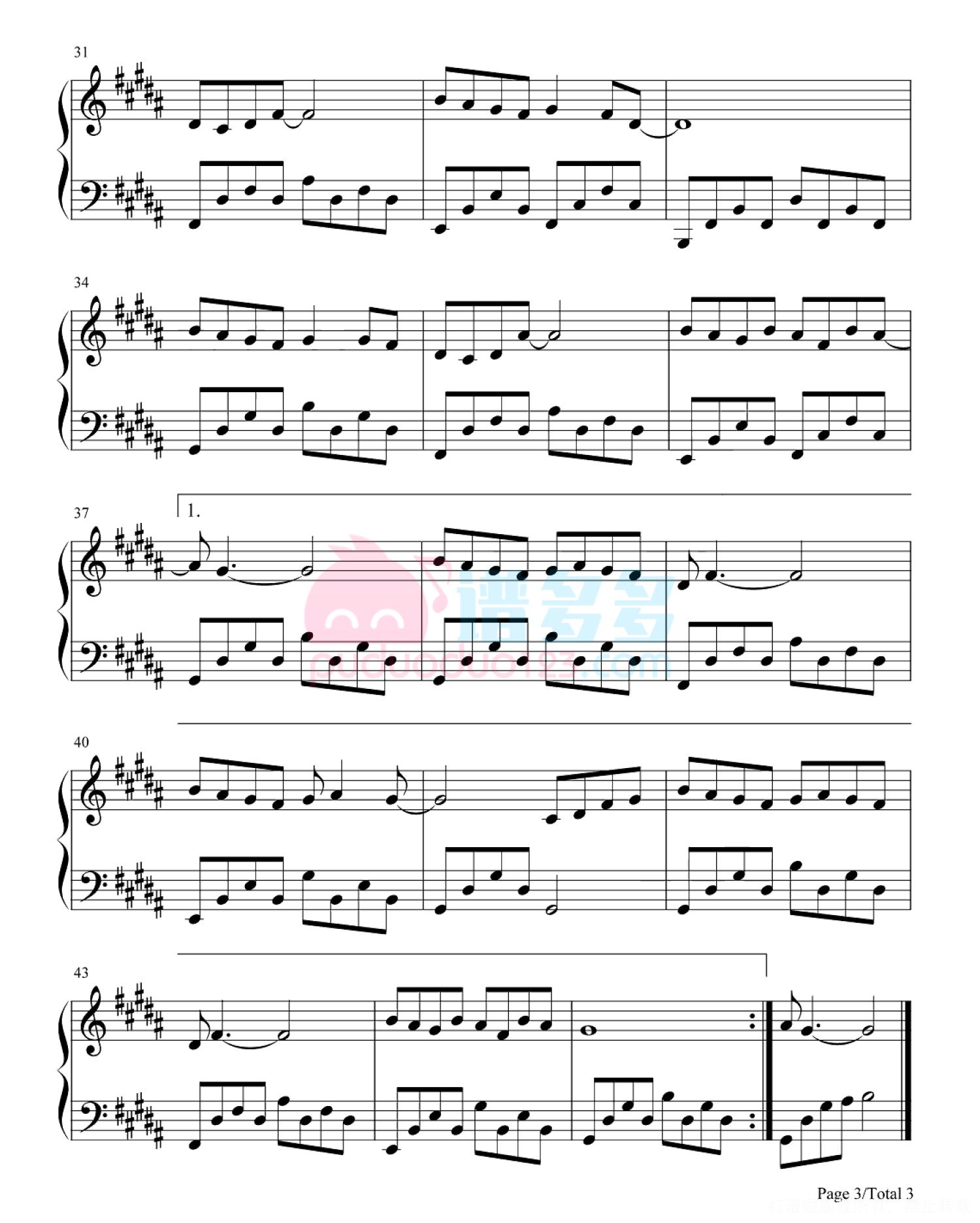 凡是琴谱网站内的版权保护水印,打印时,都会无水印。